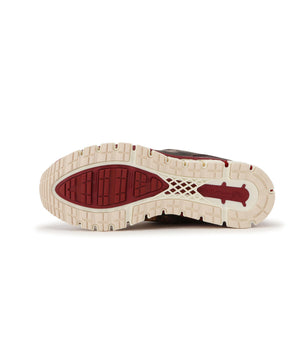 ソールには、恐竜の歯と歯茎を彷彿させるような配色で構成。両足のかかとを合わせ、つま先部分を動かすと、まるで恐竜がガブガブと口を動かしているかのように見えてきます。ライフスタイルシーンのちょっとした時間、足元で恐竜を動かしながら、ジュラ紀の世界観に浸ってみて欲しいという遊び心が芽生えるデザインです。何気ない時間を豊かな気持ちに変えてくれるシューズ、そんな想いが込められた1足です。
