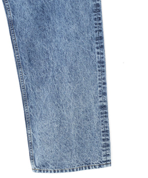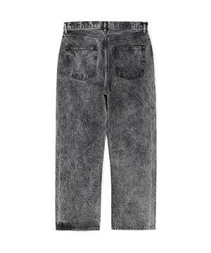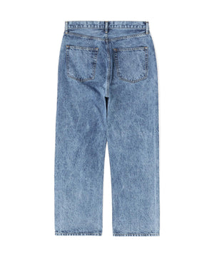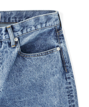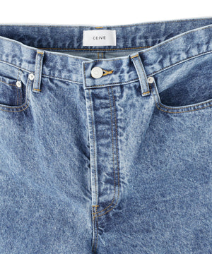 強めのウォッシュ加工を施すことで、穿き込んだような自然な色落ちと立体的な表情を再現しました。生地はしっかりとした厚みのコットンデニムを使用しており、長く愛用できるタフさも兼備。