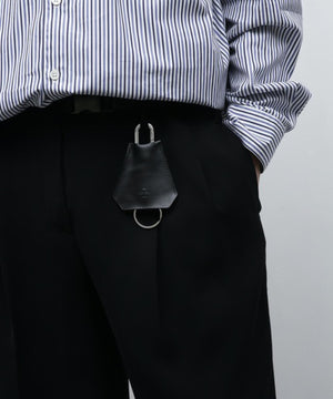 栃木レザーを使用したクロシェット型のキーリング。カラビナをベルトループに取り付けて使用することができます。少し大きめのサイズで存在感のあるアイテムになっています。使用している栃木レザーは、アニリン仕上げにより程良い光沢感があり、使い込むことで柔く馴染んでいく革となっています。
