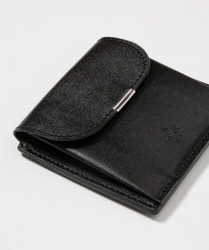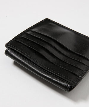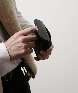 栃木レザーを使用したフラット型ウォレット。アニリン仕上げにより程良い光沢感があり、使い込むことで柔く馴染んでいく革を使用しています。前面はコインポケット、背面は4枚分のカードスロット、前面と背面の間には紙幣が2つ折りで入るポケットを設けています。コインポケット、紙幣ポケットは裏地にも革を使用した贅沢な作りになっています。コイン、紙幣、カードを収納可能ながら、フラット型で薄いためポケットにも収まりやすいウォレットになっています。