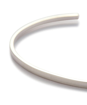 シルバー925の2本セットバングル。2.5mm幅で厚みは薄く、角のエッジを立たせたデザインになっています。ゴールドはシルバー925に24金メッキを施しています。2本重ねでも別々でも、アレンジの広さも魅力。裏側には刻印が入っています。仕上げは鏡面加工で光沢を強く出しています。