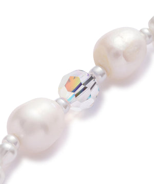淡水パールとアクリルパールが、天上からこぼれ落ちる雫のように連なり、