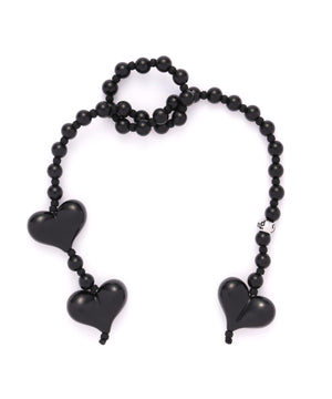 磨き上げられたグレードAのオブシディアンに、シグネチャーのブラックアクリルハート、そしてマット仕上げの日本製Miyukiビーズ。