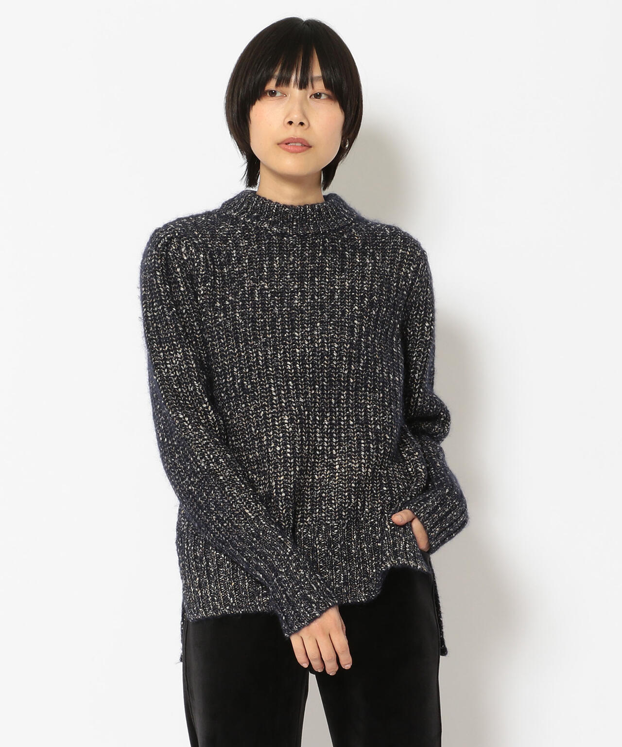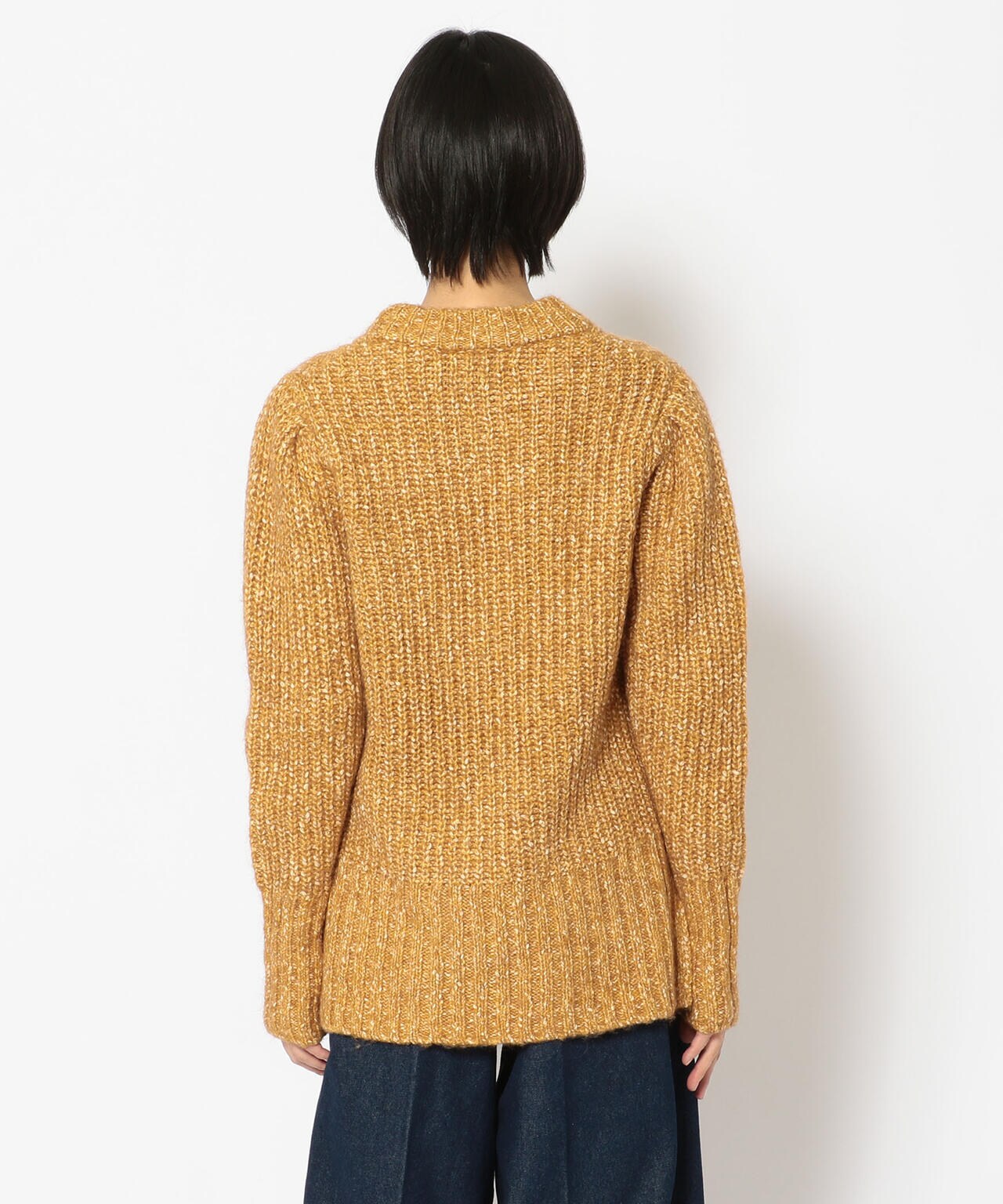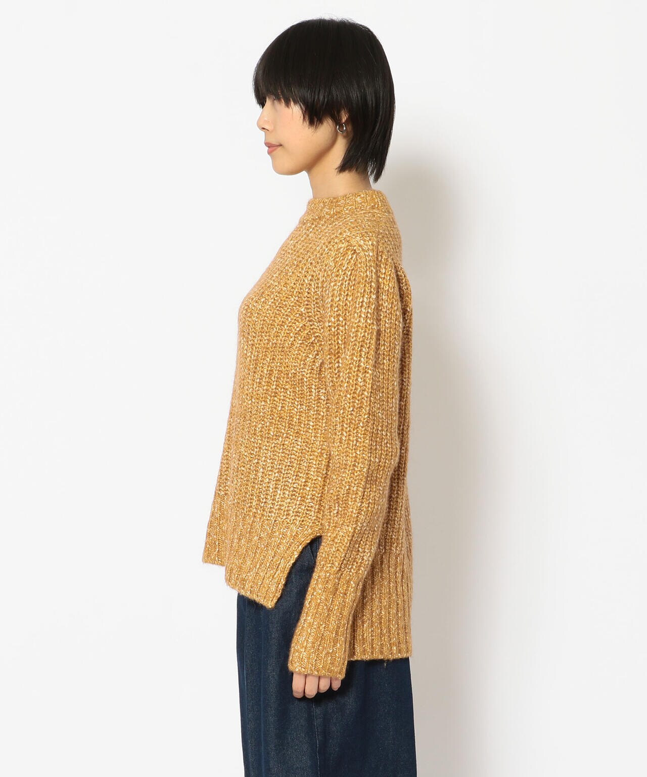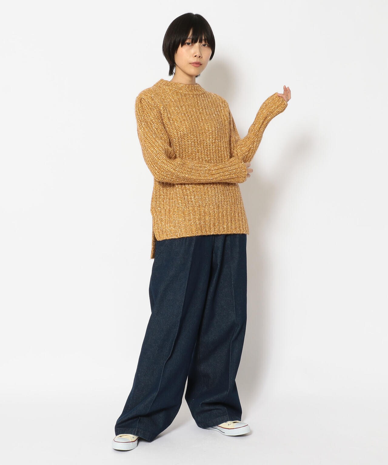 肩にタックが入っているので程よいボリューム感が生まれ、今季らしいシルエットのシンプルなニット。