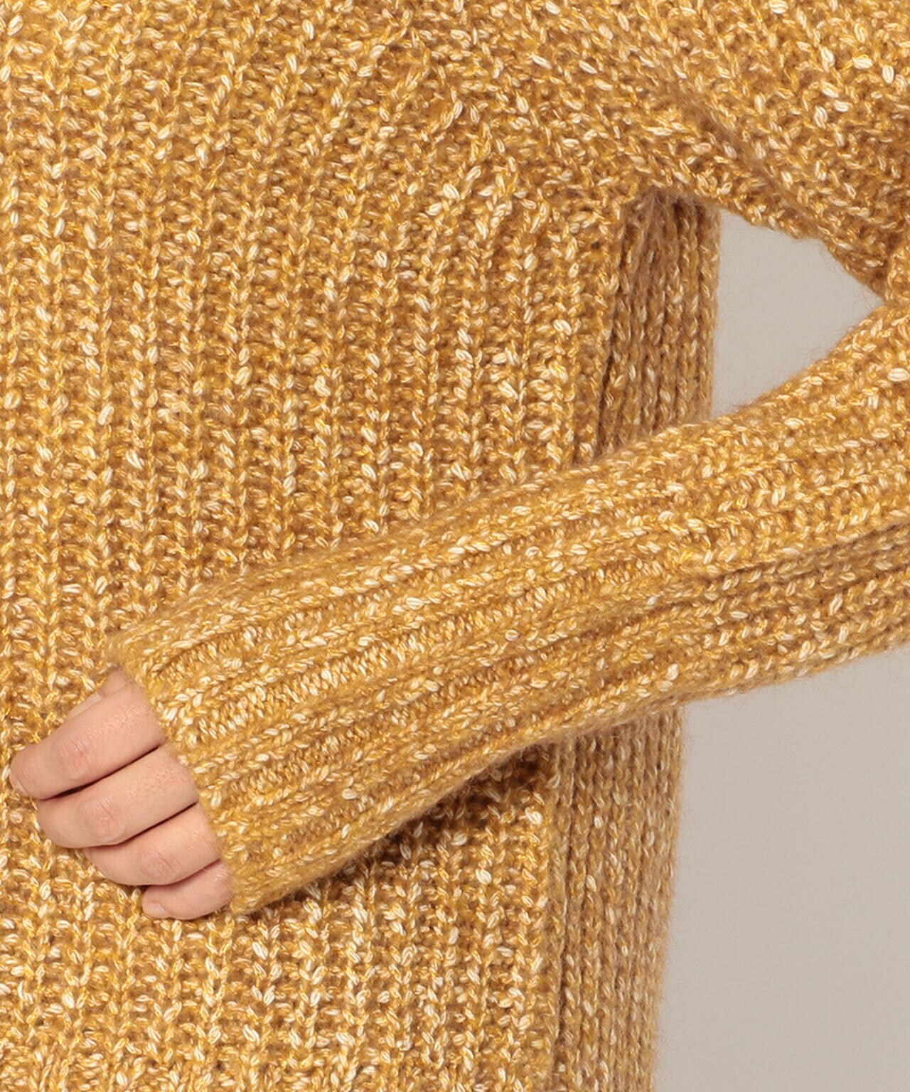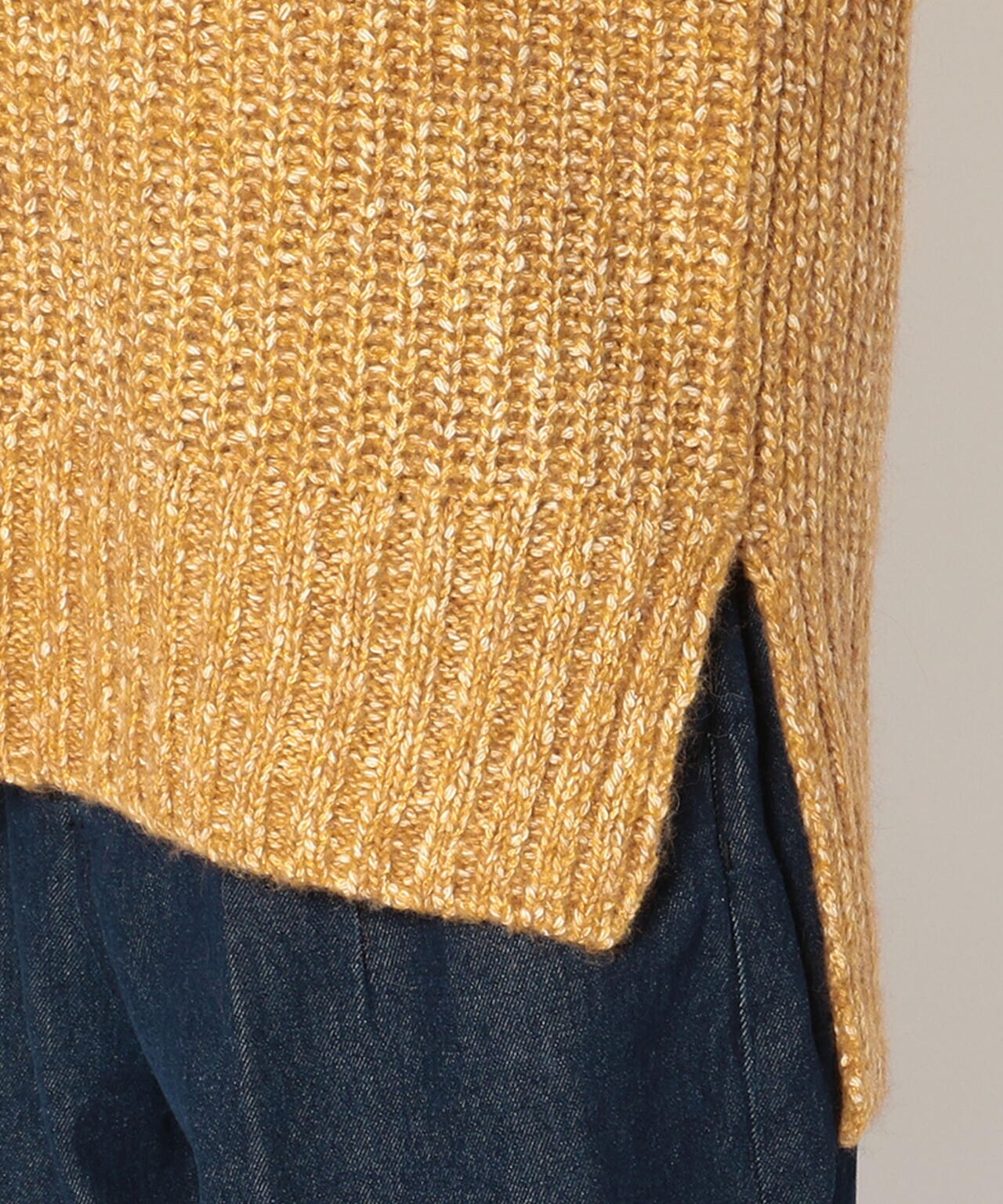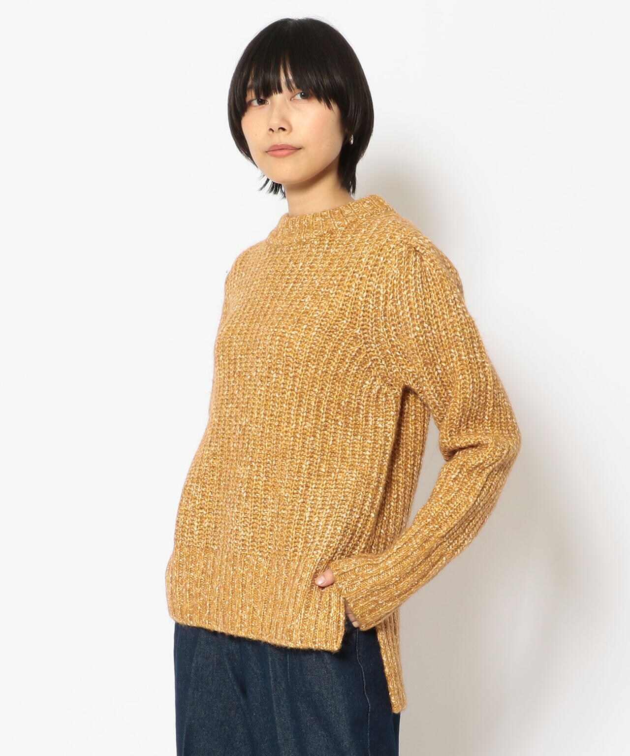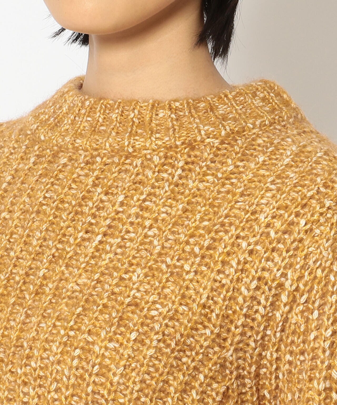 肩にタックが入っているので程よいボリューム感が生まれ、今季らしいシルエットのシンプルなニット。