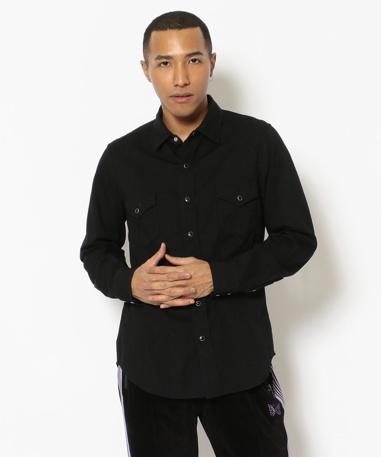 5.5ozのライトオンスブラックデニムを採用したタイトなシルエットのウエスタンシャツ