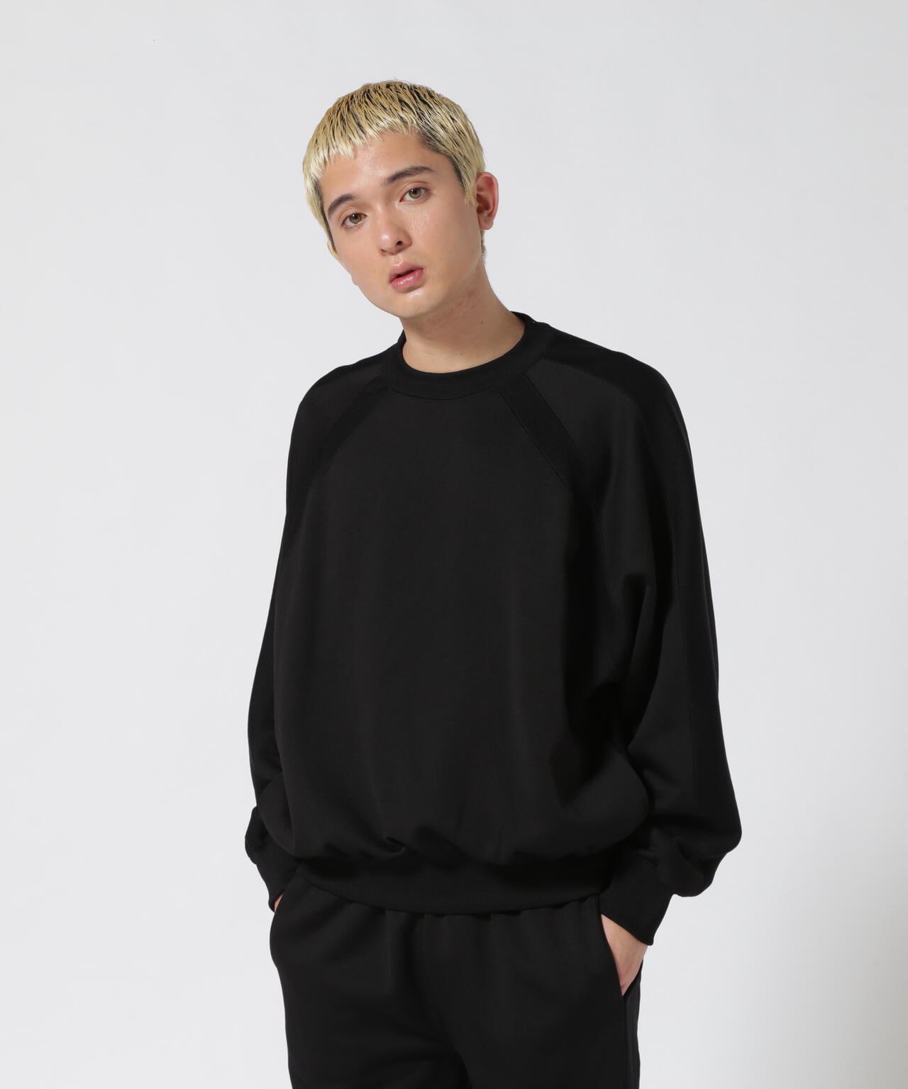 REMI RELIEFのクルーネックジャージ。身幅やアームホールはゆとりを持たせたシルエットでトレンドなスタイリングにもぴったりとハマる使い勝手の良いデザイン。同系色でのラインがシンプルながらもデザインのポイントになっています。同生地のボトムスとセットアップも可能です。