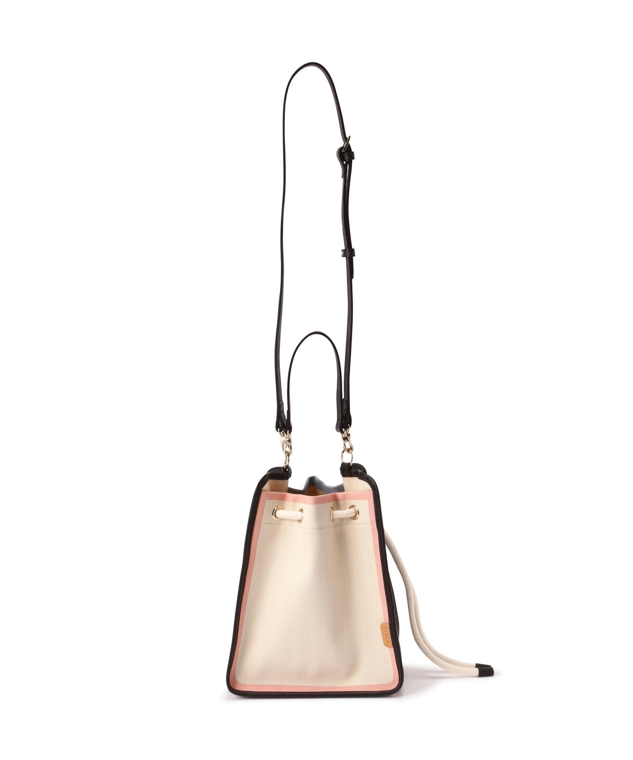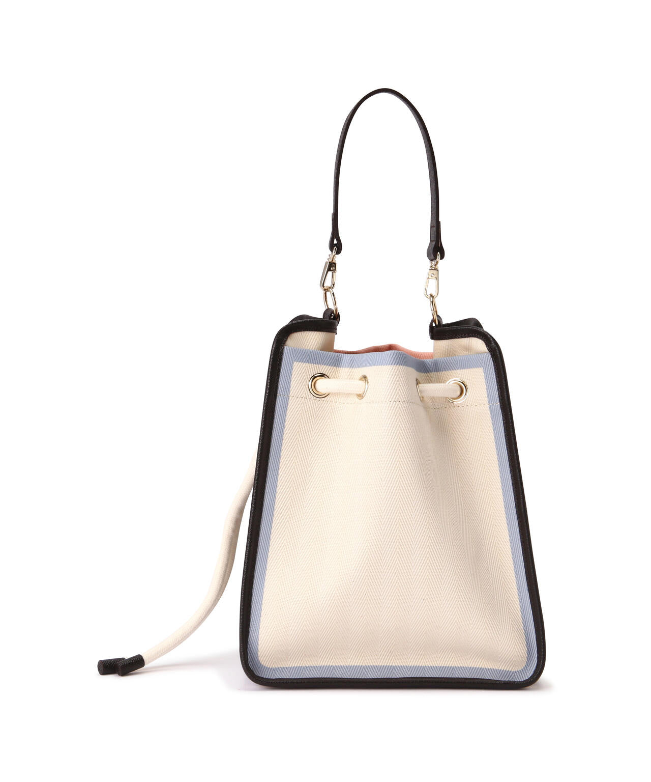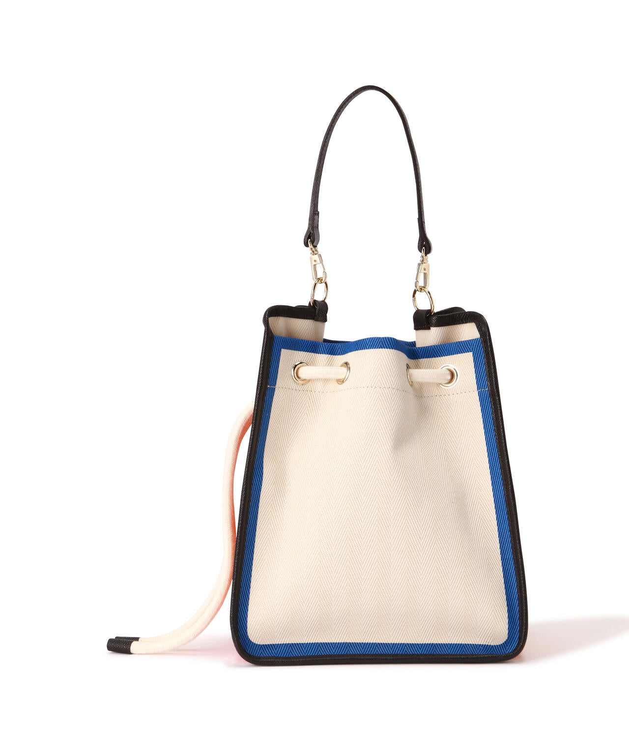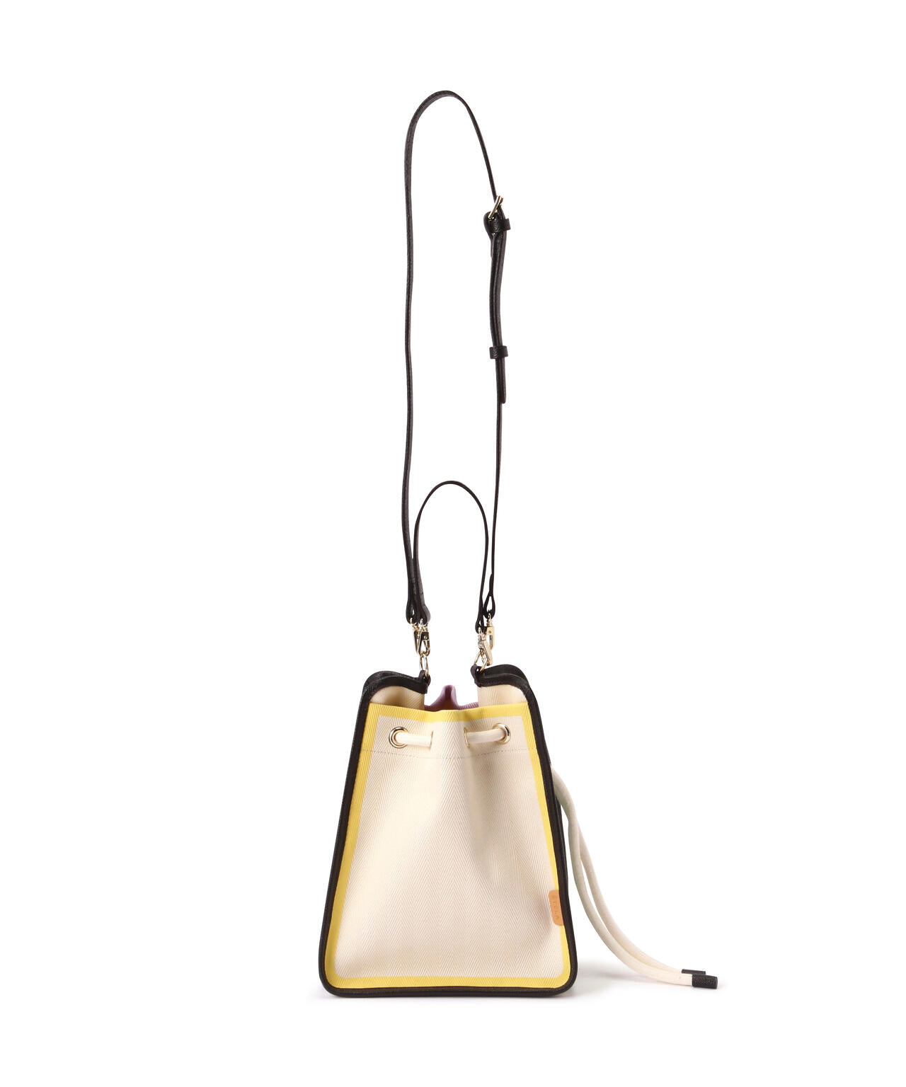 スクエア型でプリントが映える特徴的なフォルム。 ストリングを絞る事で表情の違いを楽しめます。手持ちとショルダー別々に取り外し可能なストラップが便利です。 非常に軽いキャンバスを使用することで、持ち歩きのストレスを軽減してくれます。 キャンバス内側にはコーティングを施しているため汚れにくく普段使いしやすい配慮も。 レザーのパイピングとハンドルがアクセントになり、日常使いのキャンバスを格上げしています。両サイドにポケットを配し、携帯や財布等を収納できます。