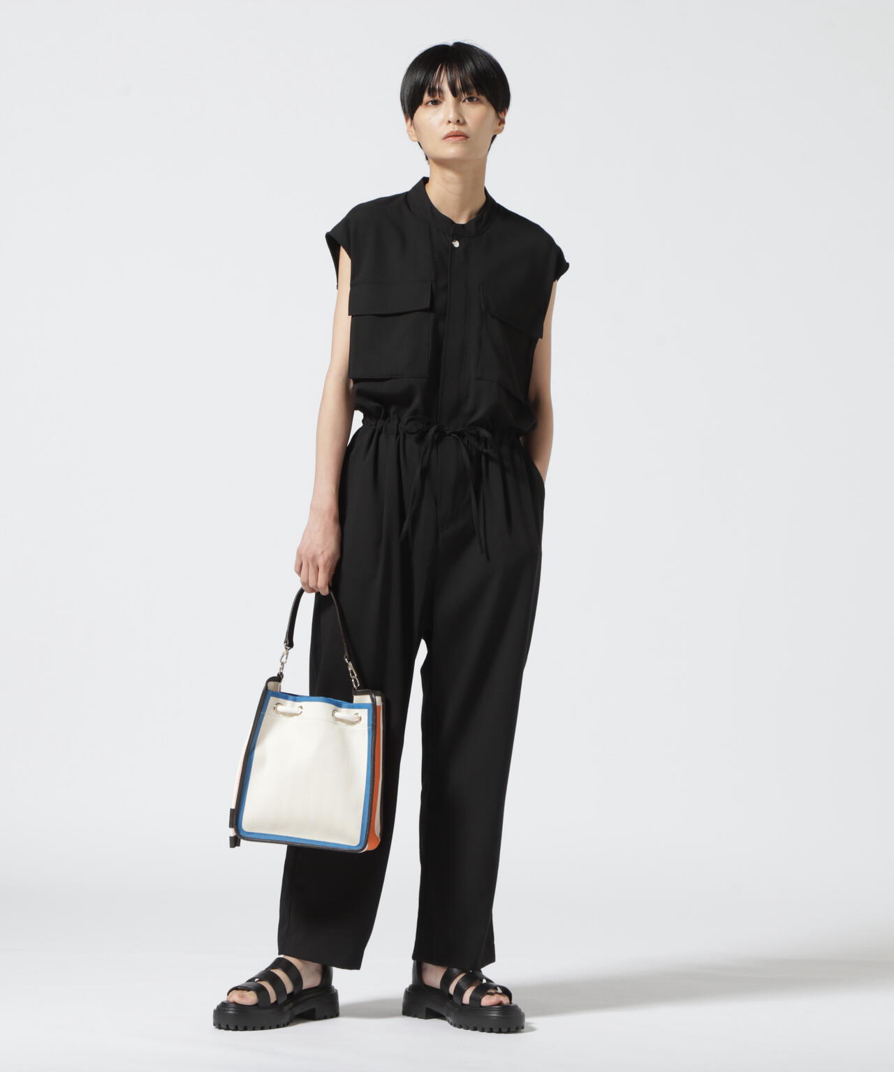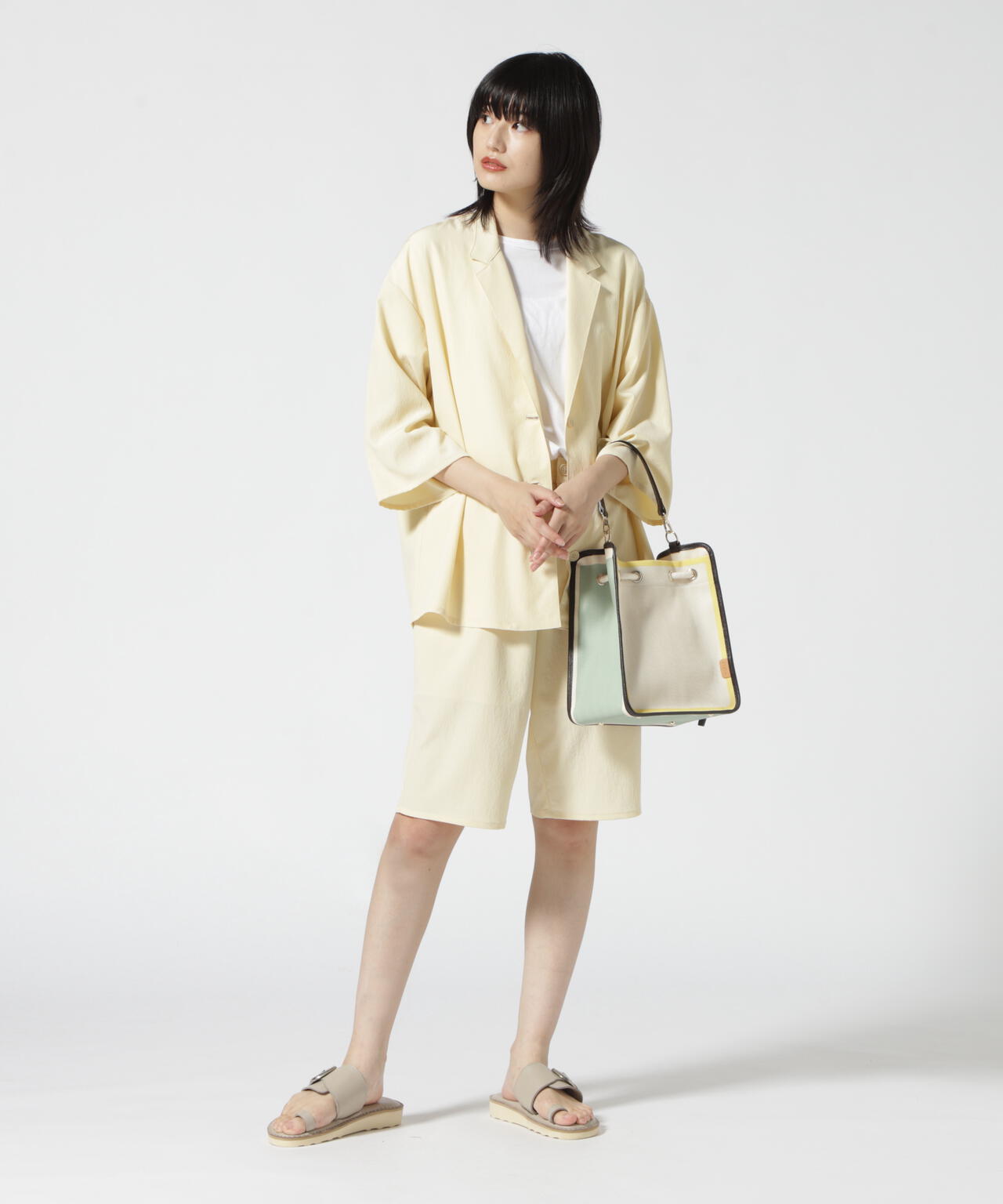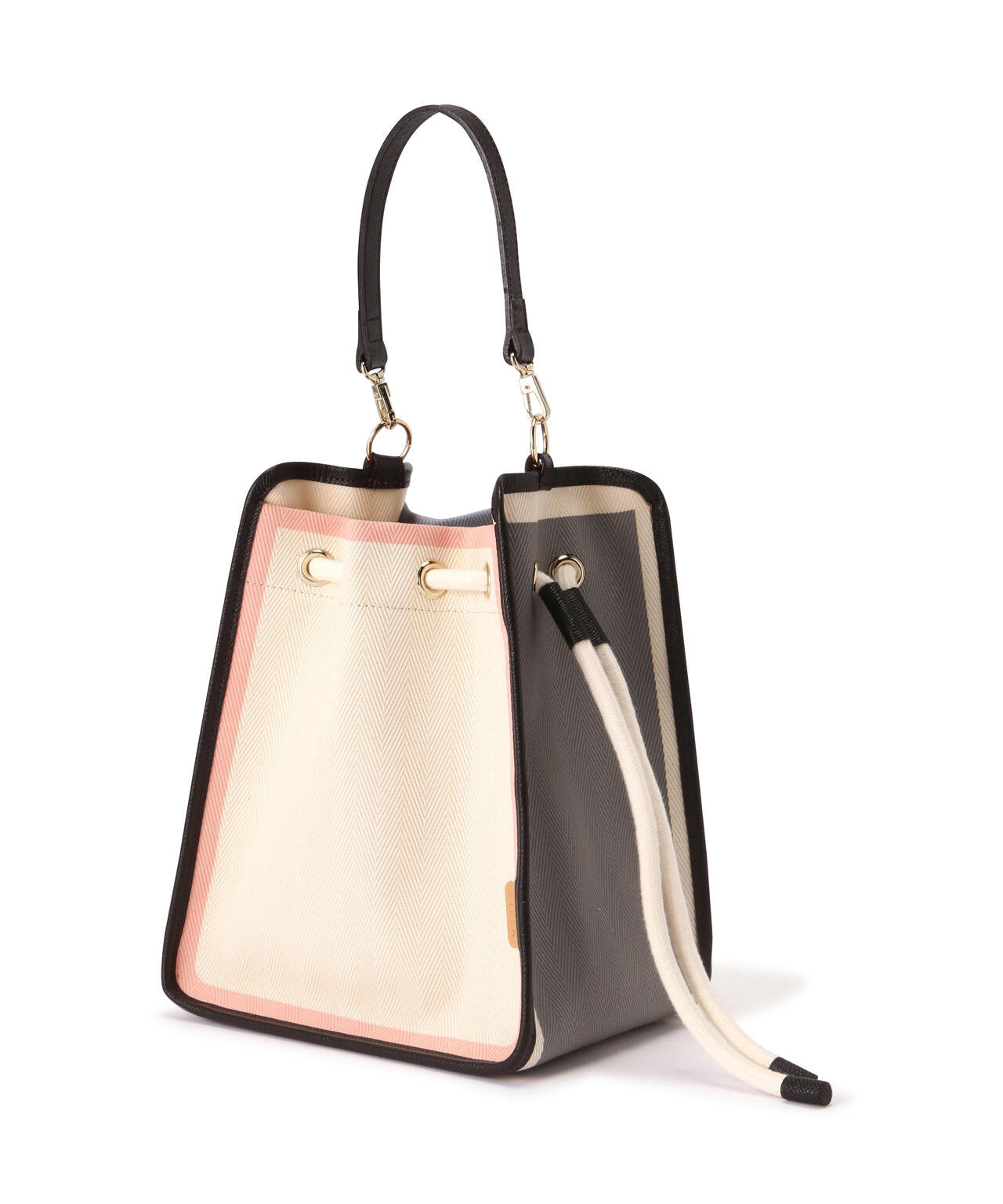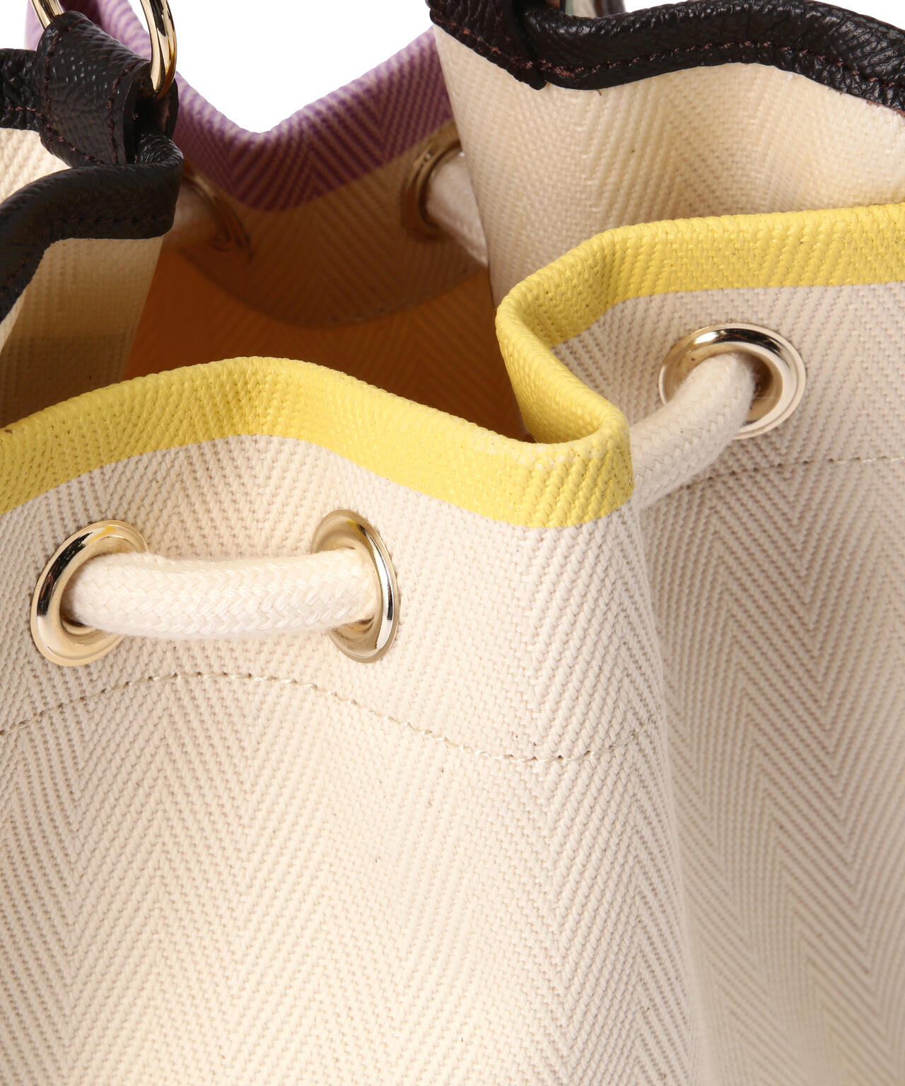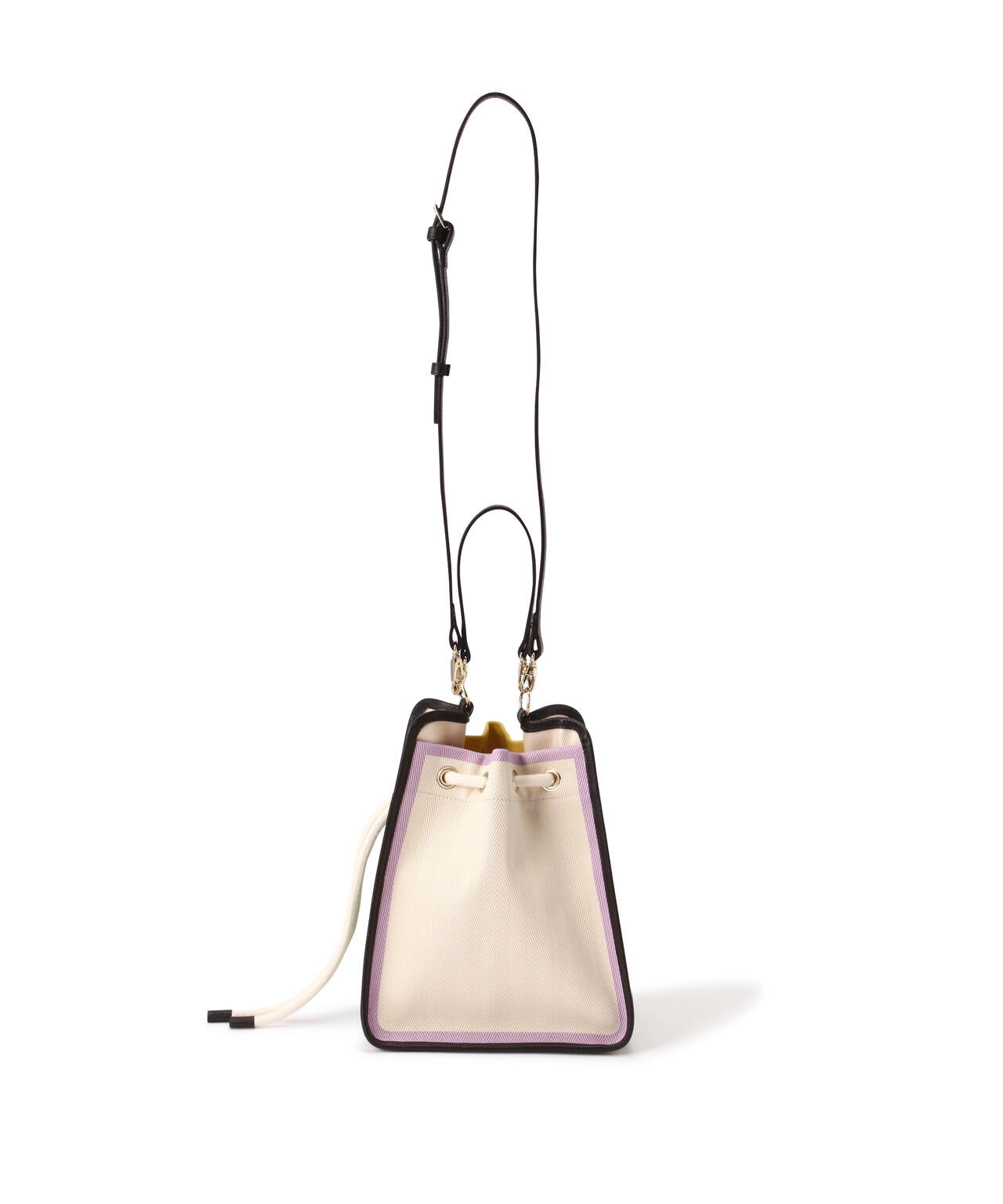 スクエア型でプリントが映える特徴的なフォルム。 ストリングを絞る事で表情の違いを楽しめます。手持ちとショルダー別々に取り外し可能なストラップが便利です。 非常に軽いキャンバスを使用することで、持ち歩きのストレスを軽減してくれます。 キャンバス内側にはコーティングを施しているため汚れにくく普段使いしやすい配慮も。 レザーのパイピングとハンドルがアクセントになり、日常使いのキャンバスを格上げしています。両サイドにポケットを配し、携帯や財布等を収納できます。