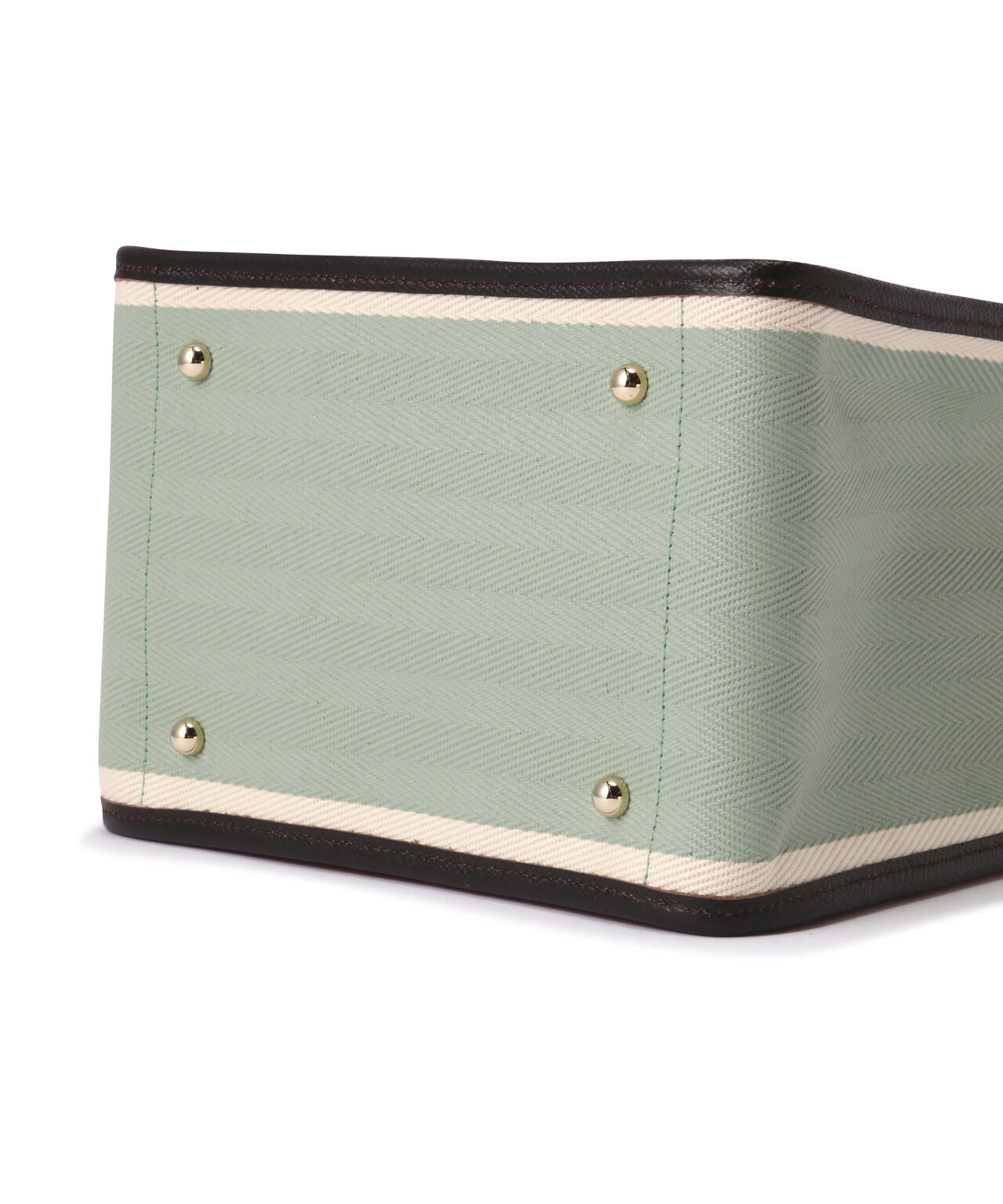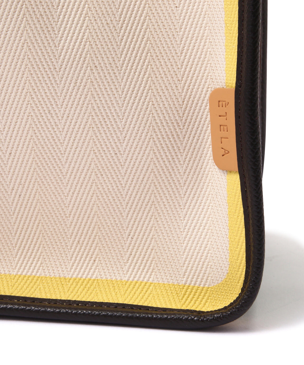 ÈTELAで使用しているキャンバスは、130年の歴史を持つ伝統的なシャトル織機によって時間をかけて織り上げられた精緻なヘリンボーンを使用しています。オリジナルの柄出しを行い、ミニマルな印象に仕上げています。生地にハリを持たせる加工により、通常のキャンバスでは出せないクリーンな見た目を表現。ブランドアイコンとなるシルクスクリーンによる発色の良いプリントとのコンビネーションはÈTELAの代名詞です。