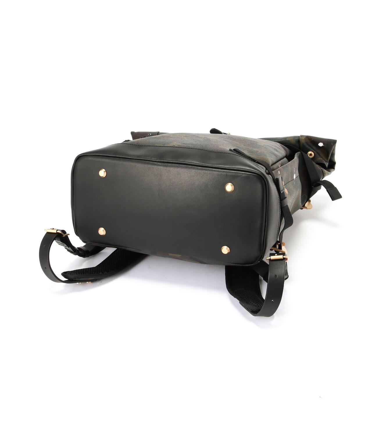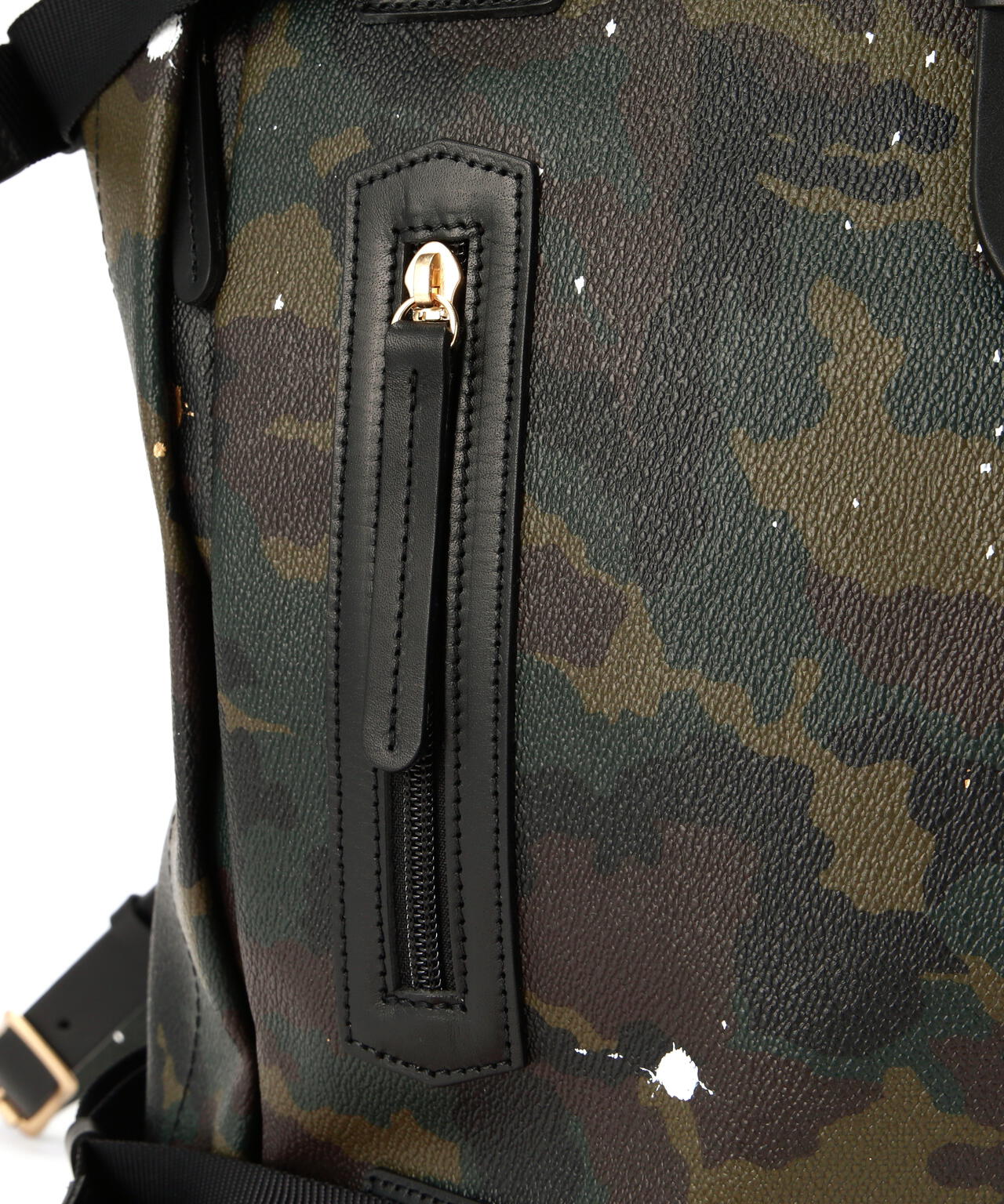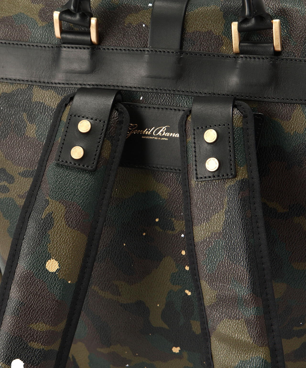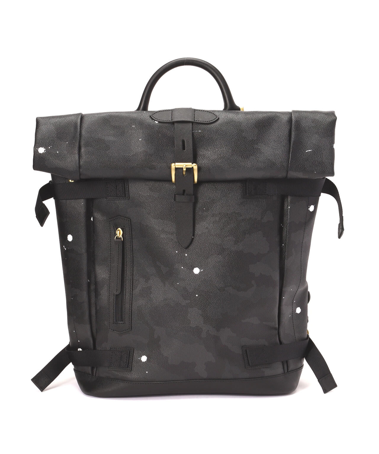 ジャンティバンティオリジナルPVCを使用したバックパック。大容量のGB1993よりも一回り小さなサイズ感は普段使いにも最適です。荷物の量に合わせて高さが調節可能なロールトップスタイル。サイドに装備されたファスナーからメイン収納部にアクセスでき、上蓋を閉じたままでも荷物の出し入れができます。サイドのストラップを調節することで、メインルームのマチ幅を変えることができるのもこのバッグのポイントです。レザーでアクセントを付けたラグジュアリーなデザイン性はビジネスにもカジュアルにもぴったりな一品です。