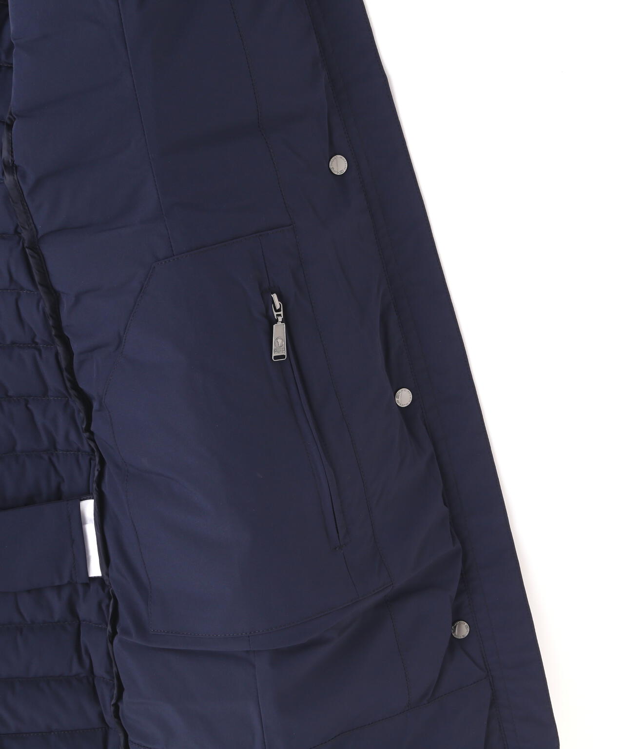 スタンドカラーで首周りも暖かいデザイン。フードは取り外しが可能な2WAY仕様。