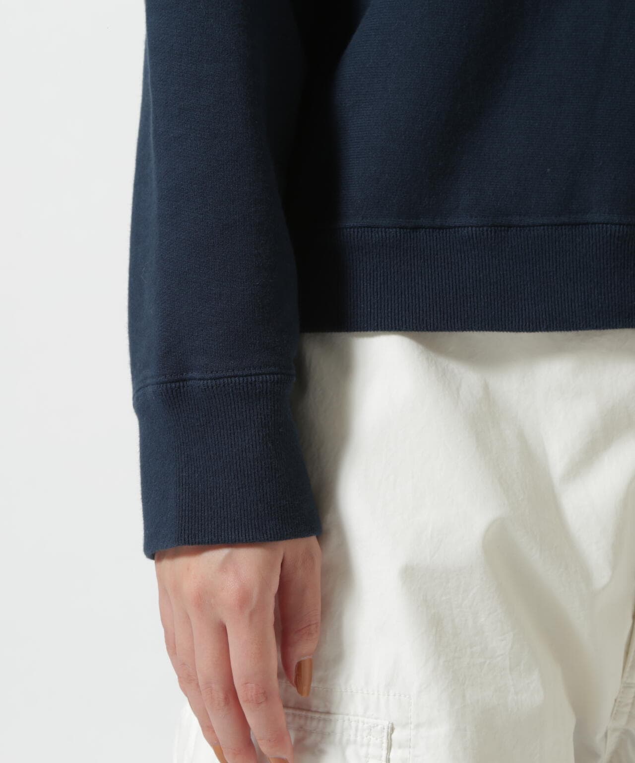 70年代のロサンゼルスの大学の購買部で売られていたカレッジトレーナーのヴィンテージを参考に作ったトレーナー。特徴はTシャツのような横軸でカジュアルな印象。袖口のトライアングルや胸元の"A"はフーディーを継承しています。