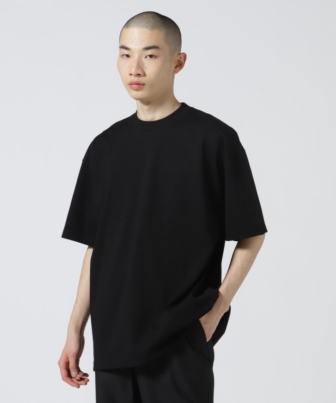 肉厚で透けのないオーバーサイズシルエットのTシャツ。首元はフライスでしっかりとつまっており、きれいすぎず、カジュアルすぎず、どんなシーンでも活躍してくれます。