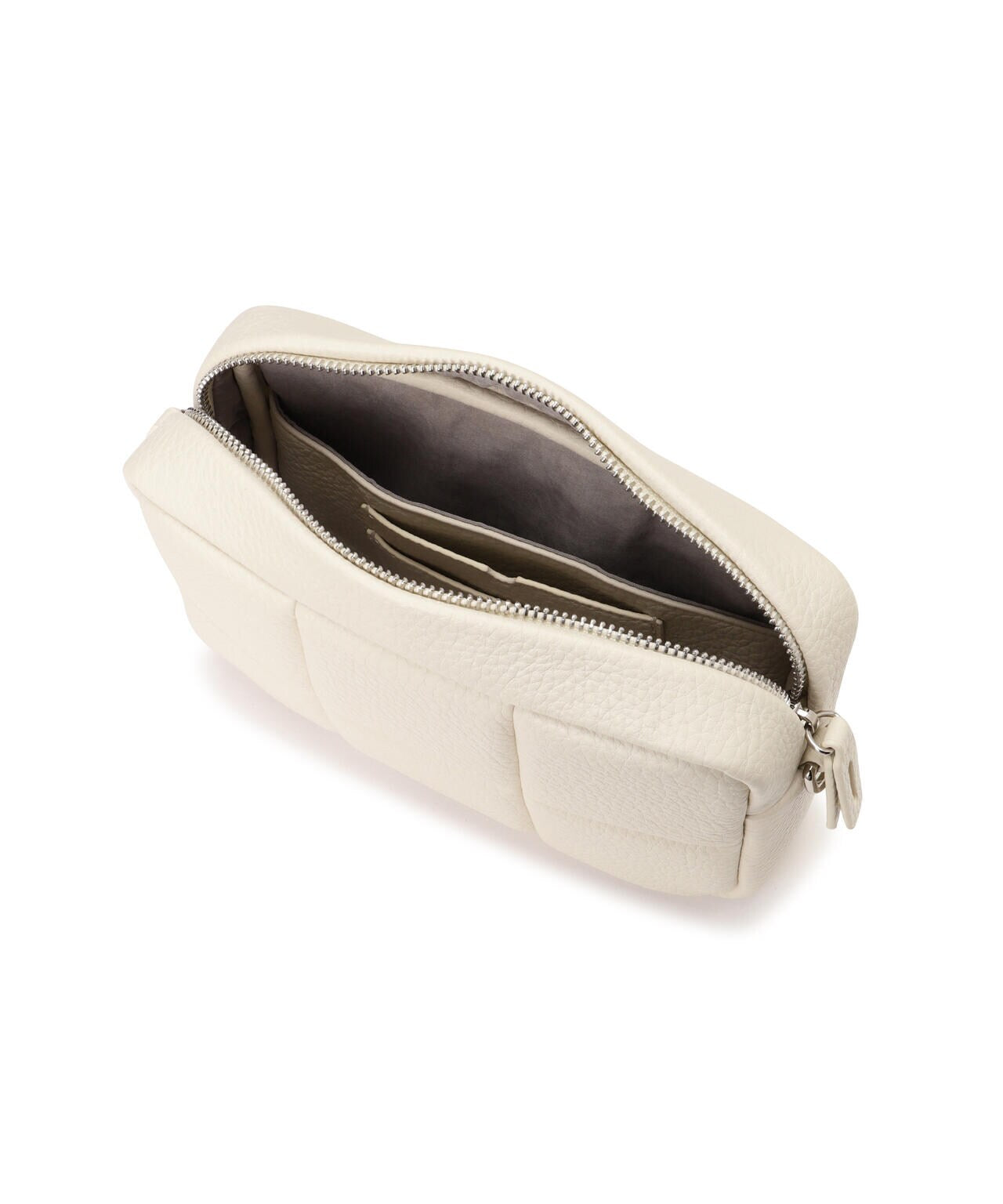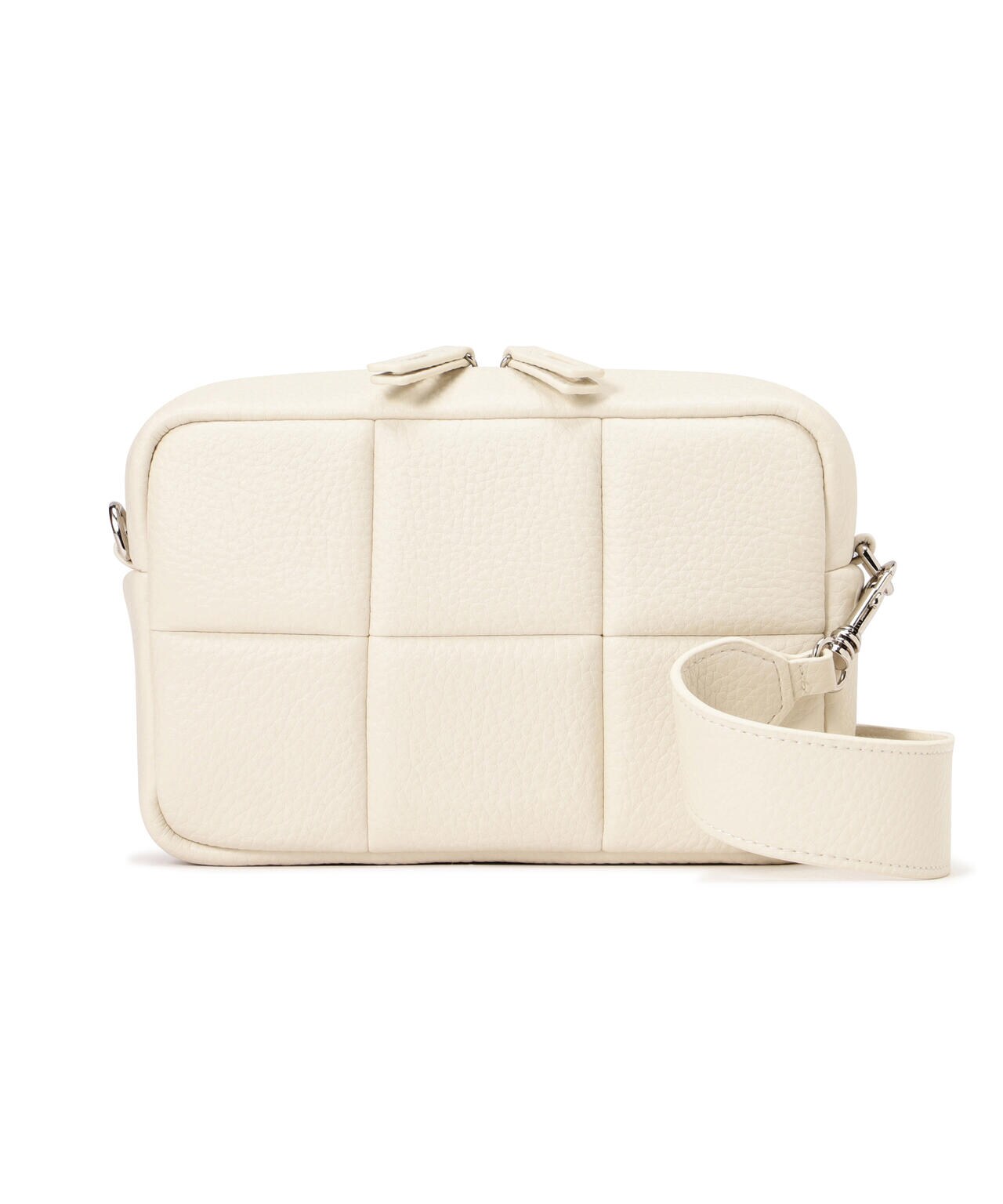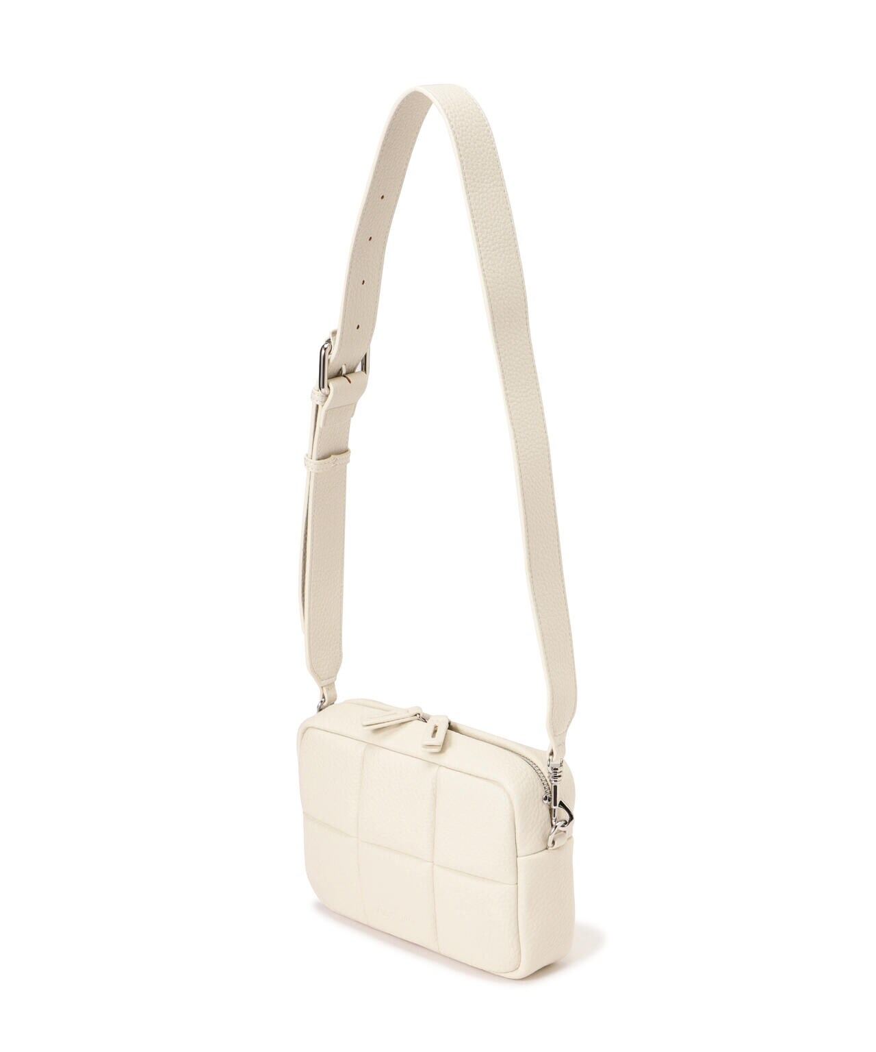 太めのショルダーストラップのクロスボディはスポーティなコーディネートにも使えるアイテムです。素材はやわらかいシボのあるヴィーガンレザーを使用しています。