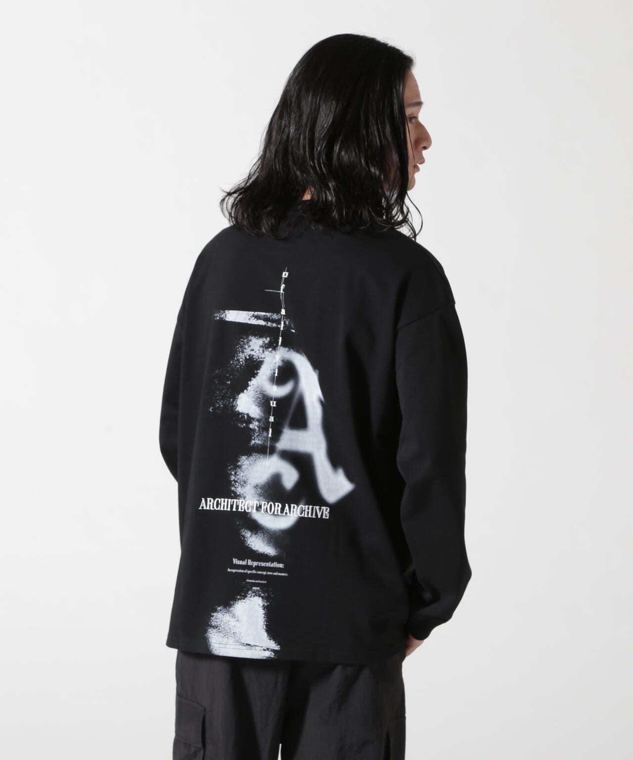 背面にA4Aならではの存在感たっぷりなグラフィックプリントが施されたロングスリーブTシャツ。