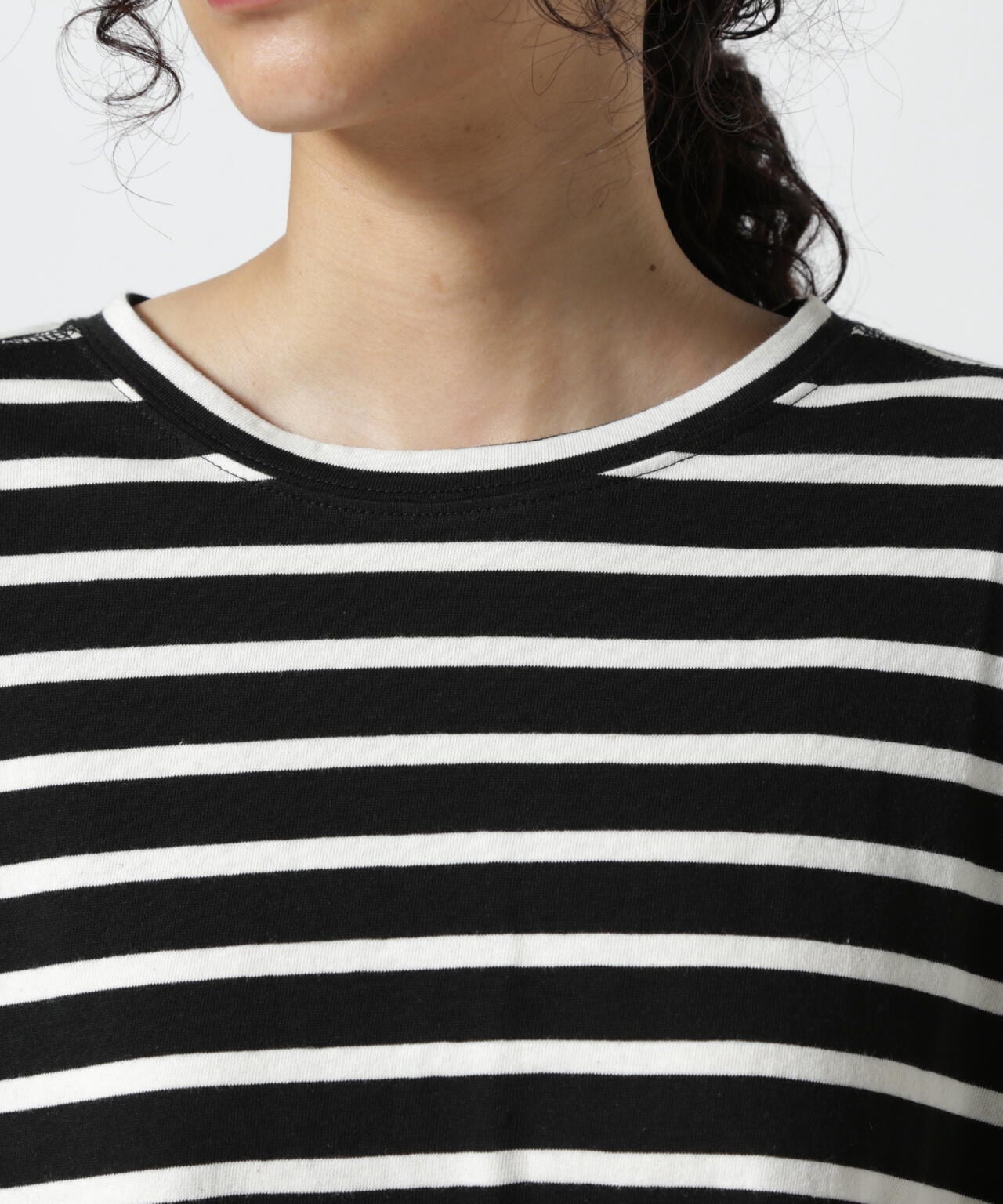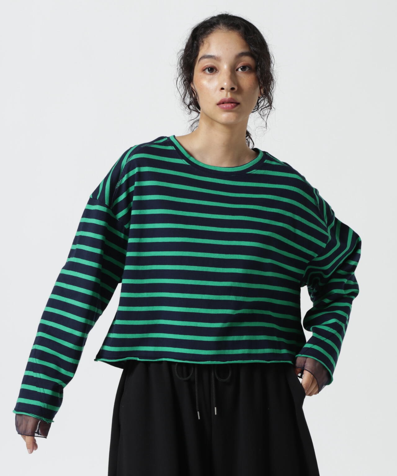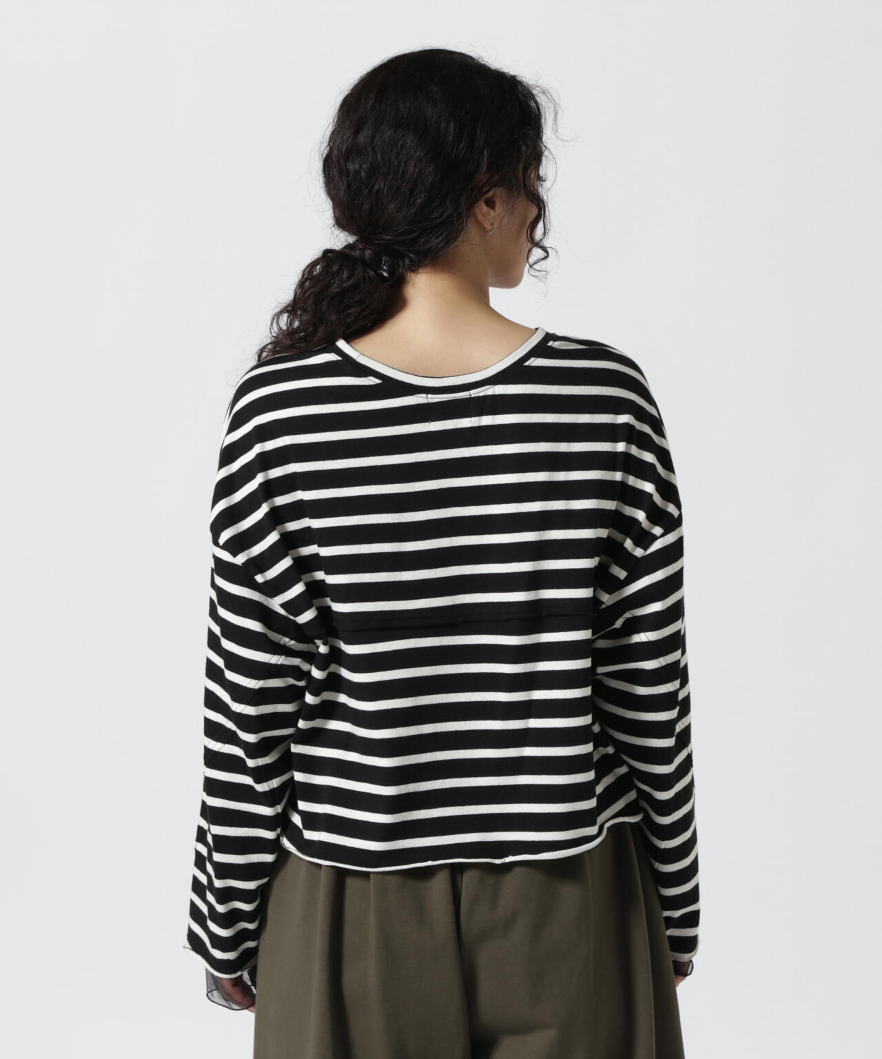 春に大好評だったカットソーの秋カラーが登場。ショート丈がトレンドらしい一枚です。シンプルでベーシックなボーダーカットソーに、お袖のチュールが加わった新鮮なデザインです。