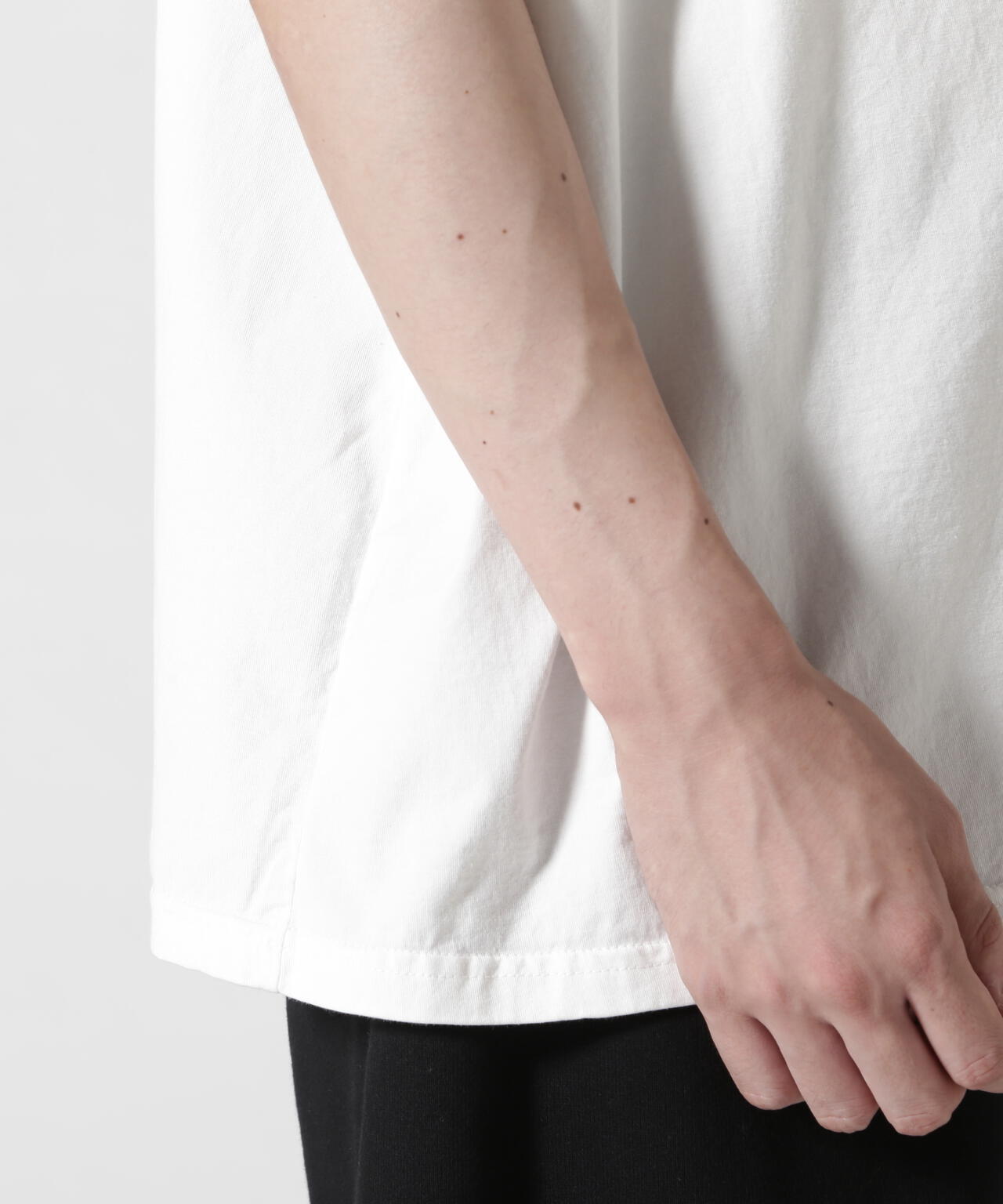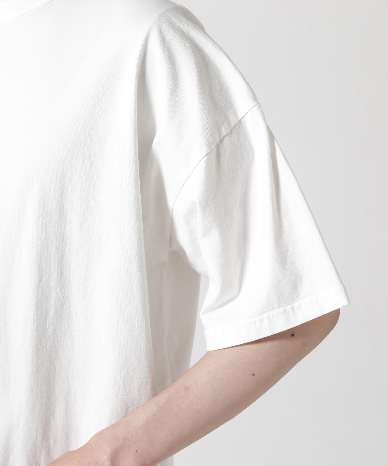 肌触りの良い25/-天竺生地を使用し、製品染めを施すことで古着のような雰囲気を再現した別注モデルです。
