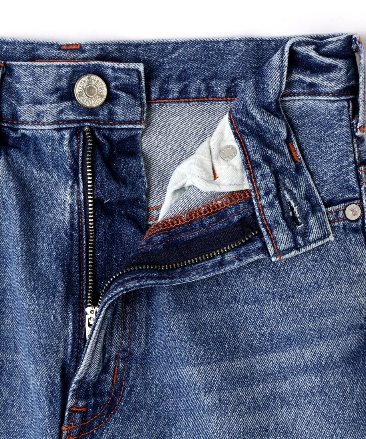 ヒップから裾にかけてはワイドなのに対し、ウエスト周りはフィットしており体のラインを綺麗に見せてくれます。NEEDBYオリジナルデニム地採用で、横糸にオープンエンド糸を使用。染色にはi-Nextという方法を採用し、サステイナブルなものづくりを意識し開発をしました。様々なコスト(加工コスト、エネルギー、製作コストなど)を抑えながらもNEEDBYらしい加工感が表現できるよう試作を重ね、メイドインジャパンならではのヴィンテージ感のある生地に仕上がりました。