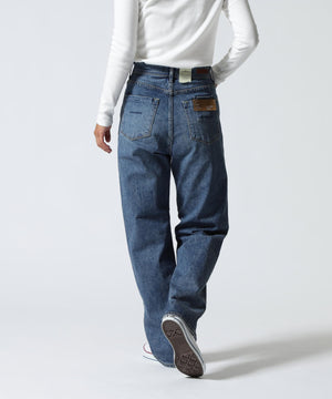 優しくフェードした表情が魅力の中淡色ブルーです。くすんだブルーの色味が秋冬のカラーコーデにも合わせやすくマッチします。脚がきれいに見えるもも擦りの位置がポイントです。全体的にあたりがついているので、ヒゲや擦り加工が主張しすぎず、本格的な見え方をしています。カジュアルなトップスはもちろんテーラードジャケットなどのキレイめアイテムとも相性がよく、シンプルなコーディネートが様になる通年お使いいただけるアイテムです。