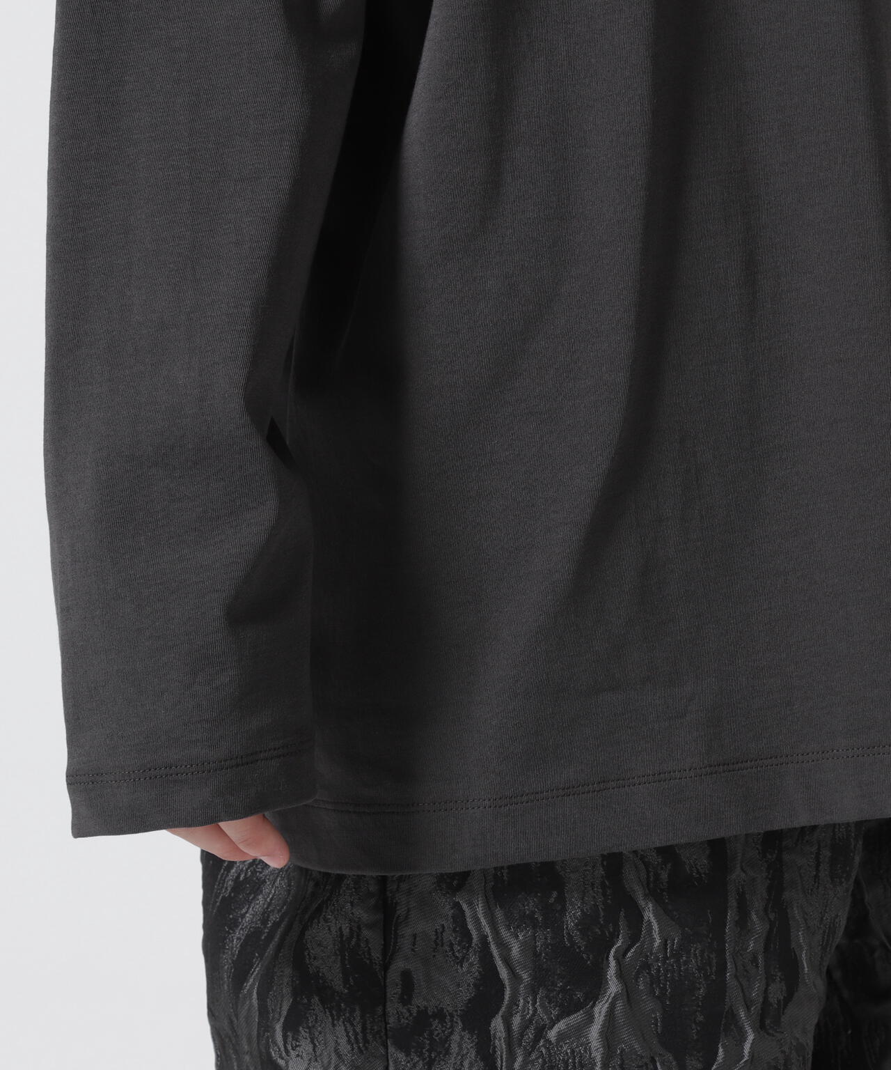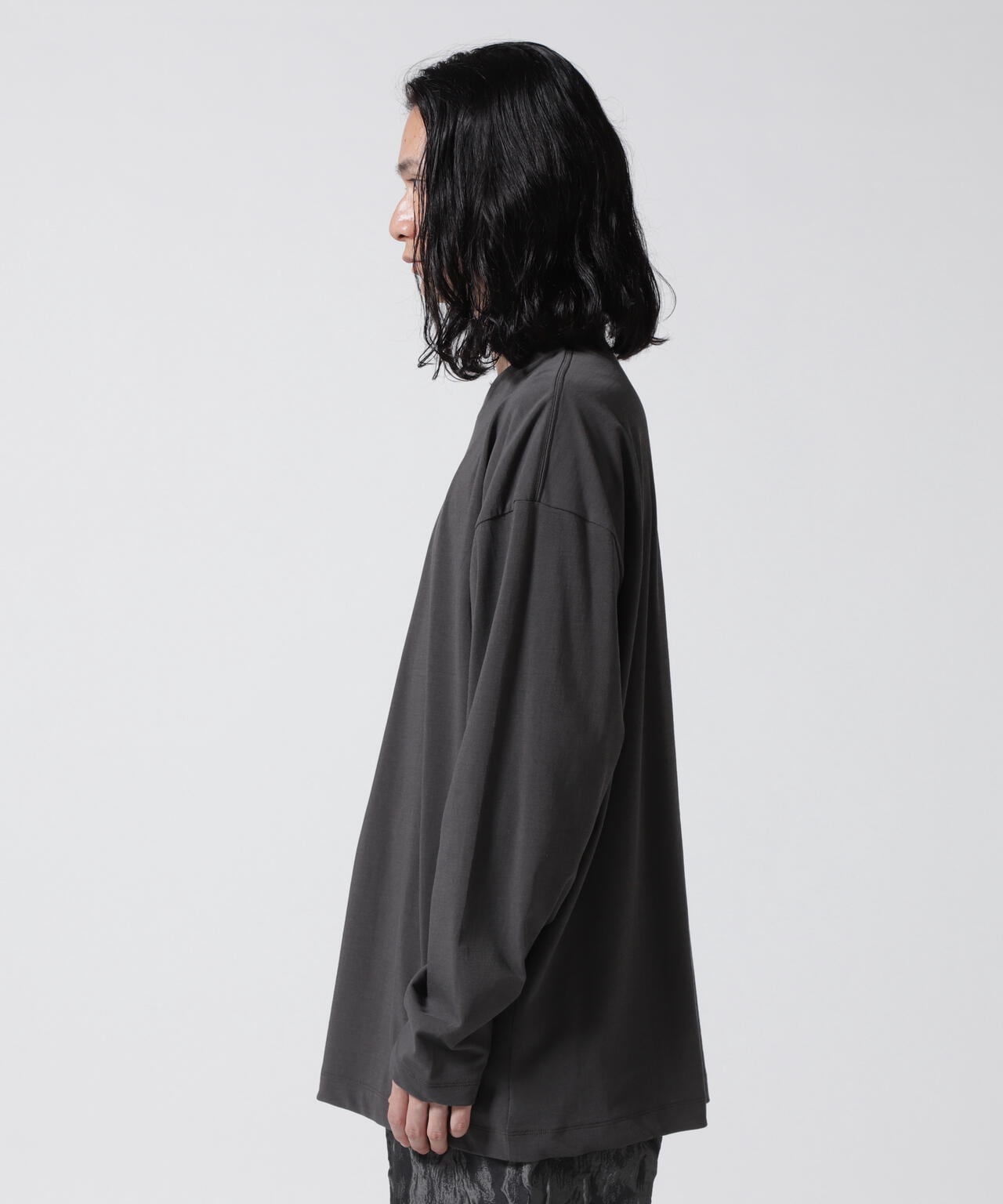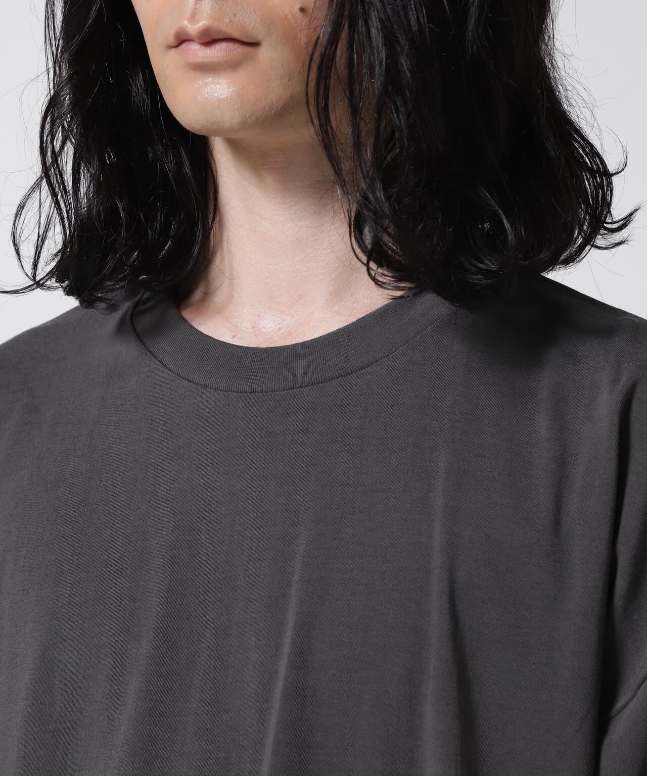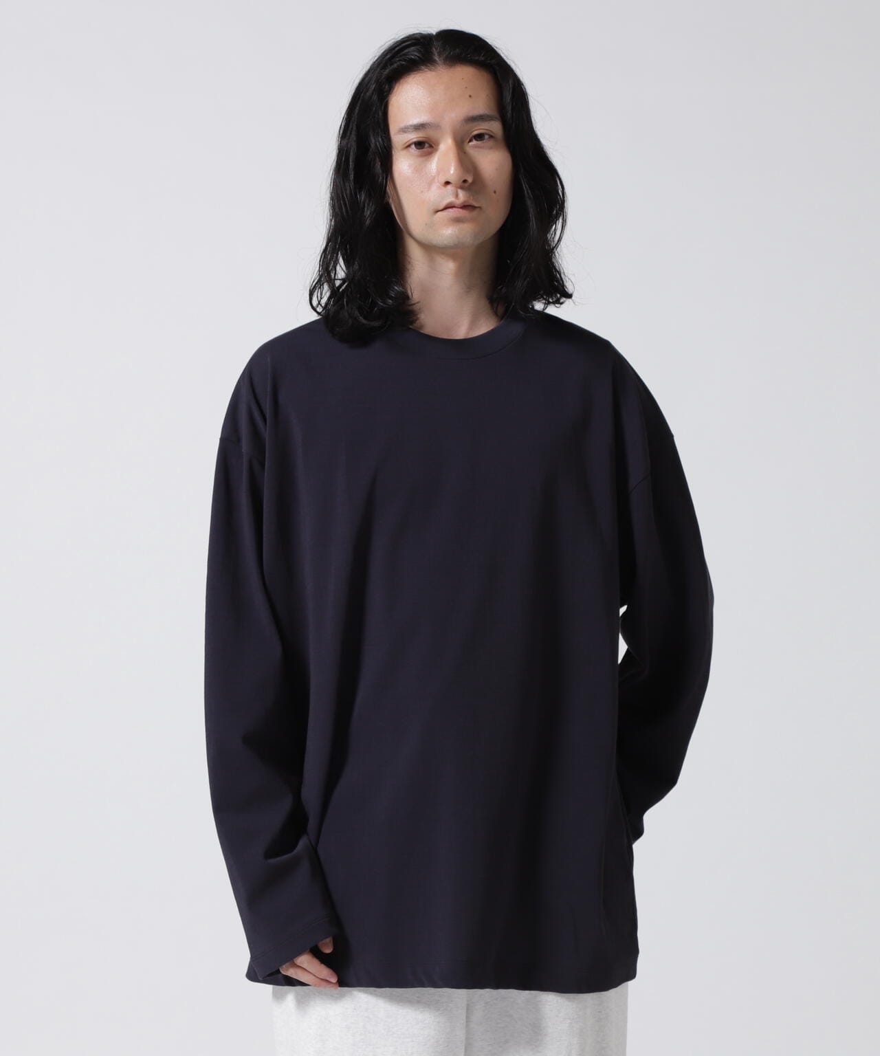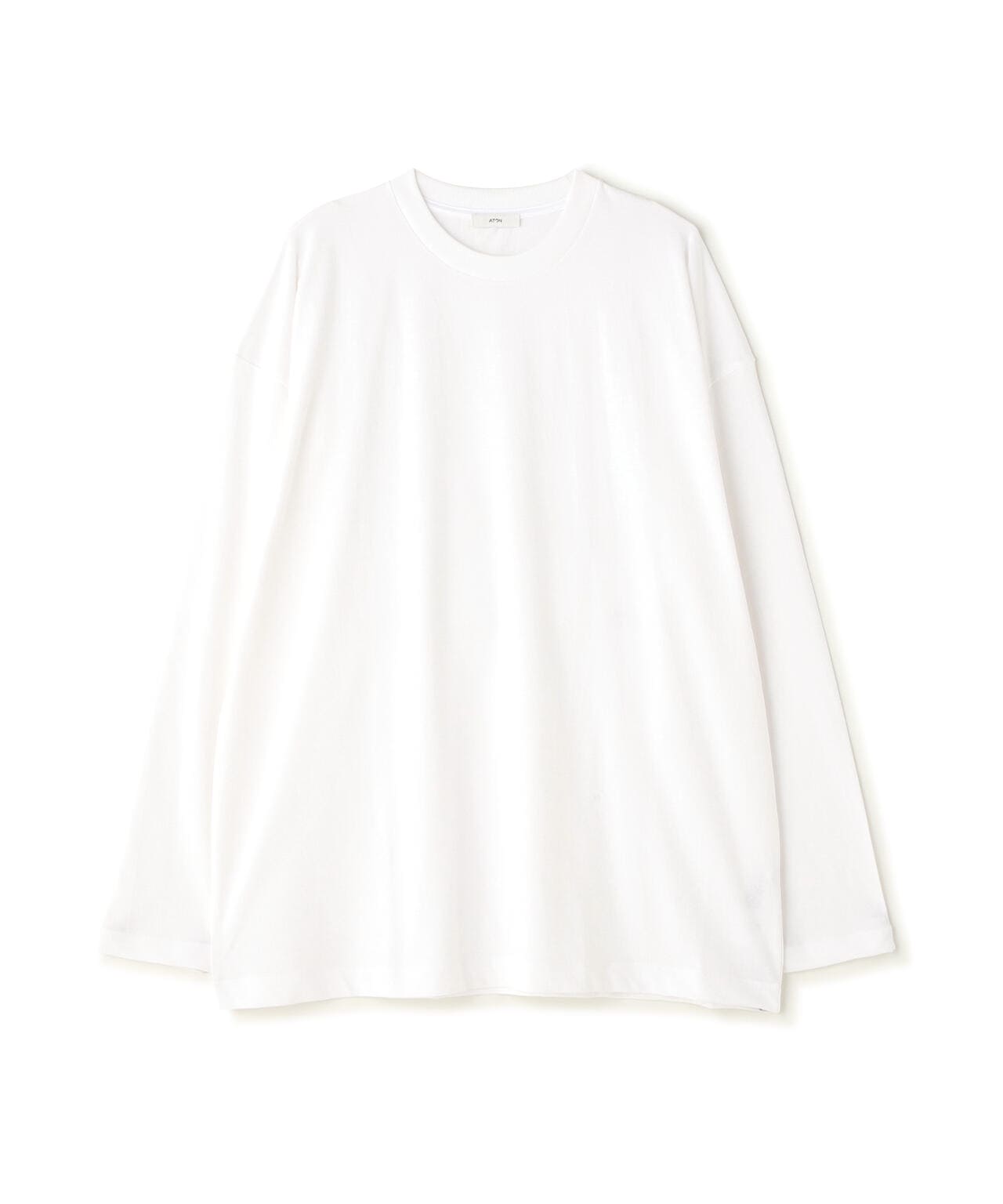 身幅に対し、着丈が少し長めのオーバーサイズシルエットが特徴の定番の長袖Tシャツです。肉厚な素材なので、男性の白Tの透けも気になりません。