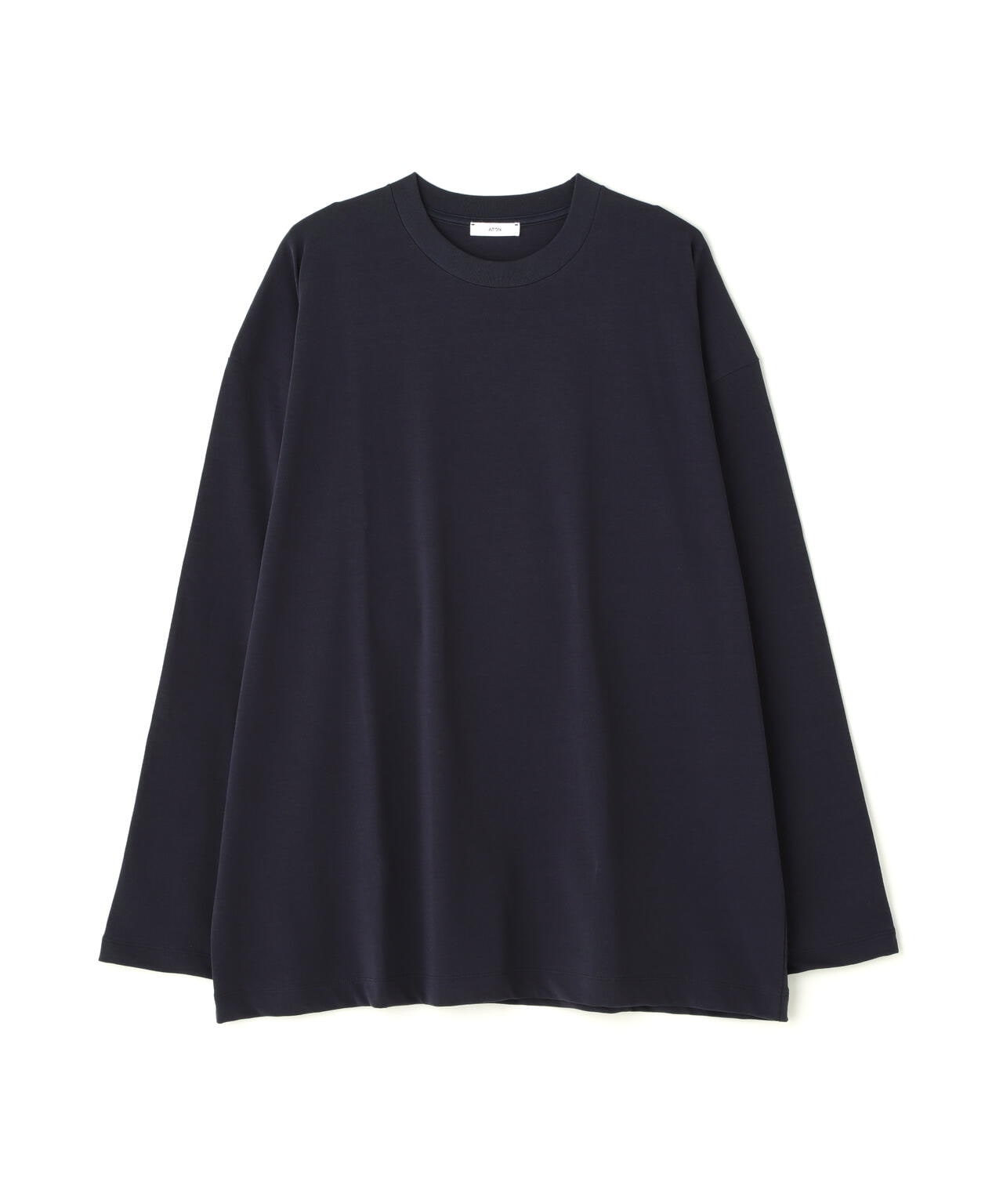 インドの手摘みのSUVIN COTTONを、和歌山市のニッターにて編まれた素材です。特別な工程を入れた大変美しい発色を可能にした強撚糸です。コットン100%とは思えないシャリ感と、肉厚なのに洗濯後も乾きやすく、糸が縮んだ時による細かな凹凸が肌との接地面を少なくし、サラッとした着心地が特長の、ATONオリジナルジャージー素材です。