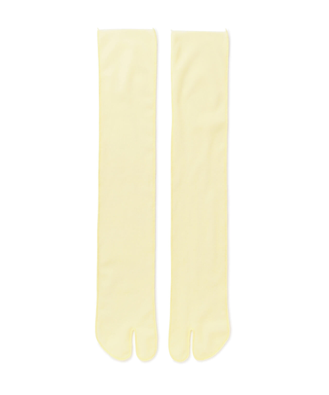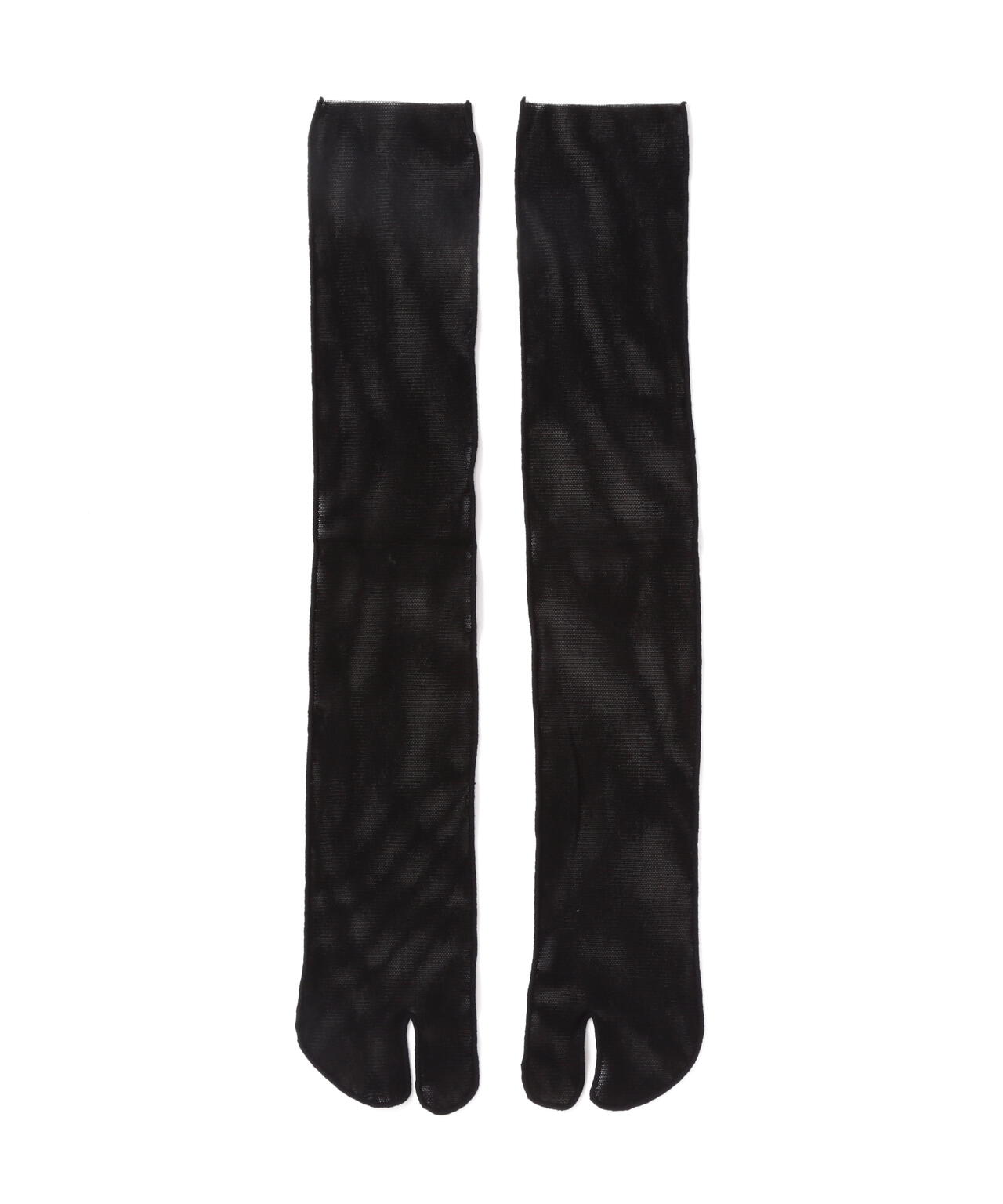 ストレッチの効いたチュール素材で出来たタビソックスは、足に程よくフィットし、サイドのメロウのウェーブがポイントに。透け感のある素材なので冬場はtabi socksとの重ねばきもおすすめです。