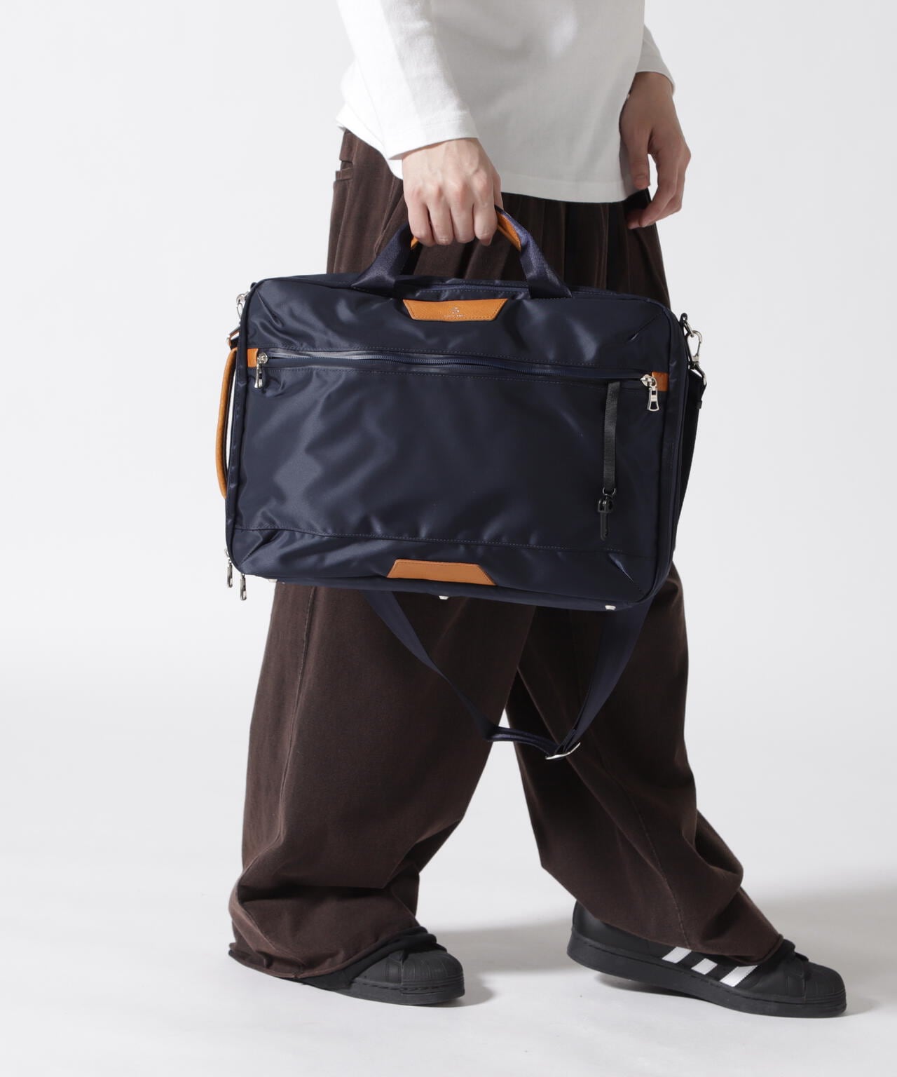 光沢感のあるナイロンツイルによる上品な表情とコンビネーションに使用されたカウレザーが印象的なmaster-piece( マスターピース)のProgress(プログレス)シリーズ。生地の裏面にはPVCコーティングが施され、防水性とハリ感を実現しています。ショルダーバッグ、バックパック、ブリーフケースと2通りでの使用が可能な3WAYタイプです。