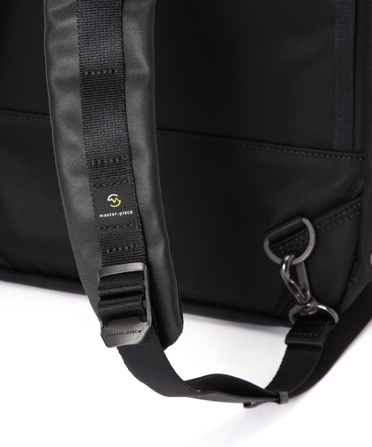 master-piece( マスターピース)のProgress-sc(プログレス エスシー)シリーズのショルダーバッグ。本体素材に環境に優しいポリウレタンをコーティングを施した600d ポリエステル生地を使用し、絶妙な光沢感を持たせながらゴムライクな質感とマットな素材感が特徴です。生地の裏面にはPVCコーティングが施され、防水性とハリ感を実現しています。内装の生地には抗菌・防臭効果のある 420d のナイロン生地を使用し、臭いの原因となる黄色ブドウ状球菌の繁殖を制御するため、その分泌物から発生する悪臭を防止します。