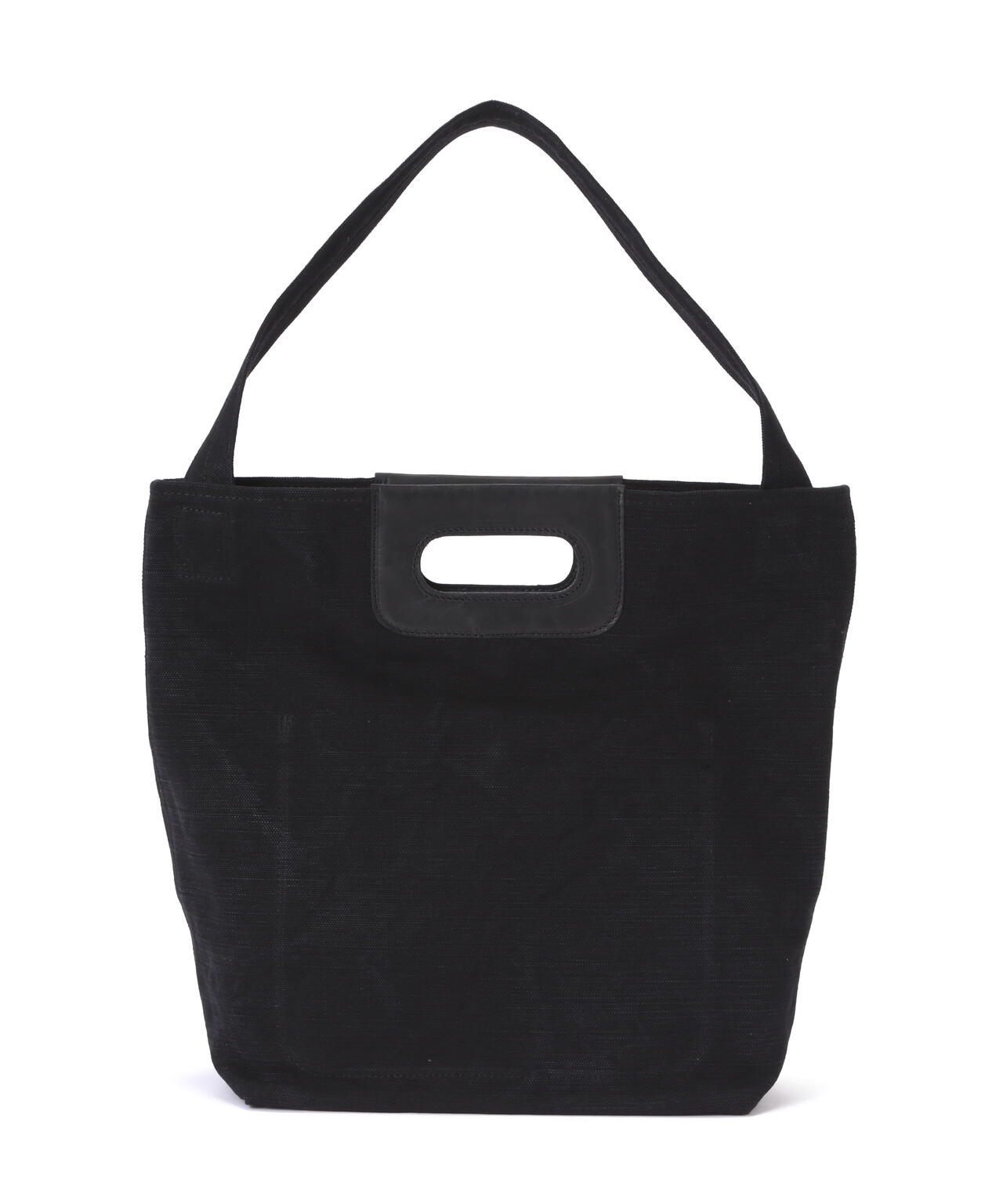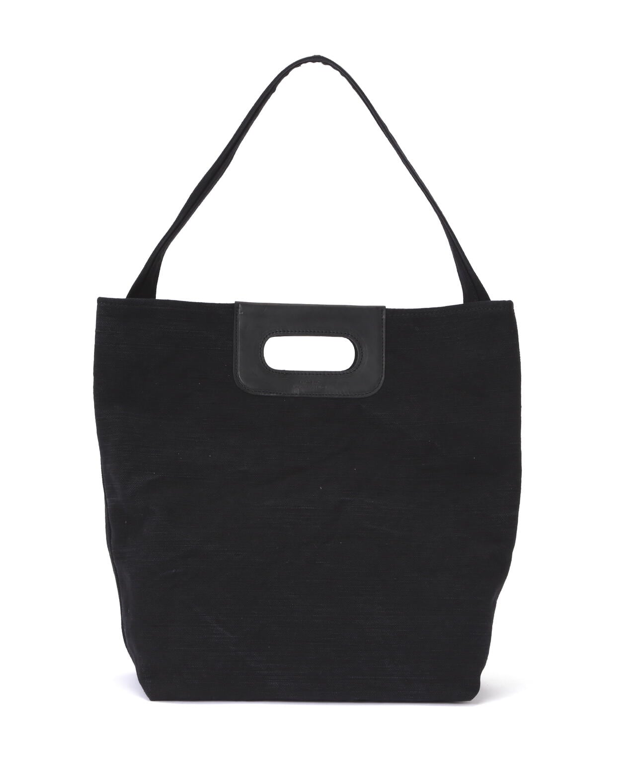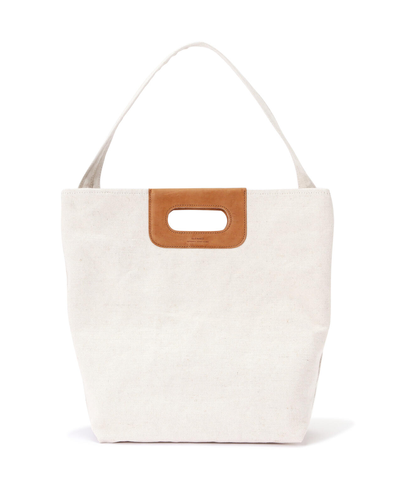 レザーのハンドルが特徴的な2WAYハンドバッグ。