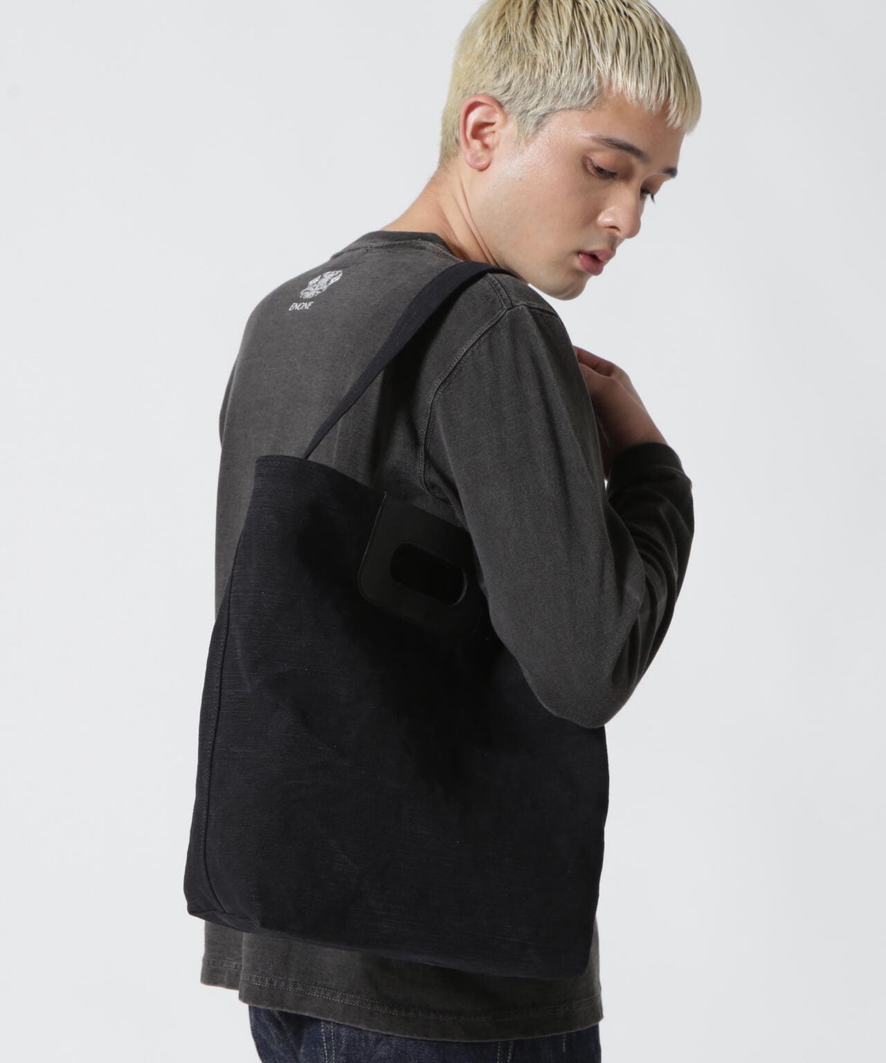 岡山県倉敷市の伝統的な整織工場にて、今では希少なシャトル織機を使用して時間をかけながらしっかりと織り上げた生地です。 綿と麻を織り込んだ生地は、極厚でボリュームのある素材です。 またその生地をさらにバイオウォッシュ加工することで生地の持つ自然な表情と風合いを引き出し、長年にわたって大切に使用されてきたかのようなヴィンテージ感をもたらしています。