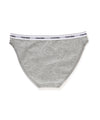 ロゴテープのウエストバンドをアクセントにしたビキニショーツ。はき込み丈がやや浅めで、足口は鋭角に切り込んだハイレッグカットを採用しています。身生地にはしなやかに伸びるストレッチコットンを使用。ボディラインにフィットして脚が動かしやすく、ボトムスとの相性も選びません。