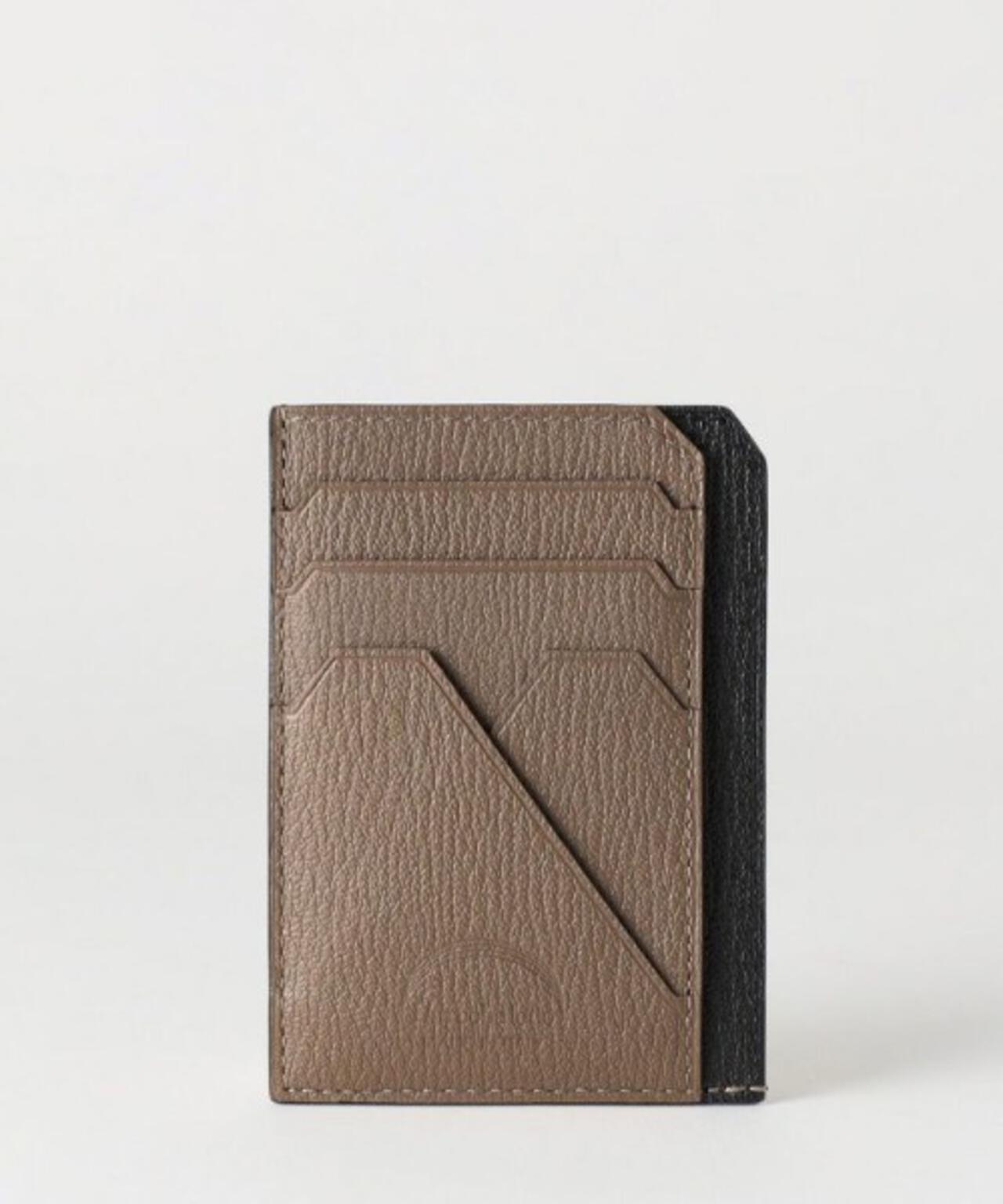 技術力の高さを体感できるカードポケットは前面が山型にデザインされており、ブランドのアイコン的なディテールとなっています。2室のフリーポケットは2辺が開いているのでスムーズに取り出すことが可能で、紙幣を2つ折りで収納することが可能です。