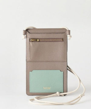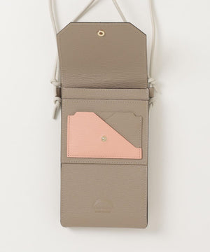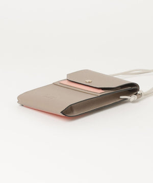 表裏合わせてカード×3、お札、コインを収納できるスペースをそれぞれ設けたウォレット機能はこれまで同様に、ポーチ部分にマチをつけたことで、スマホ+αを入れても収納可能な容量を実現しました。