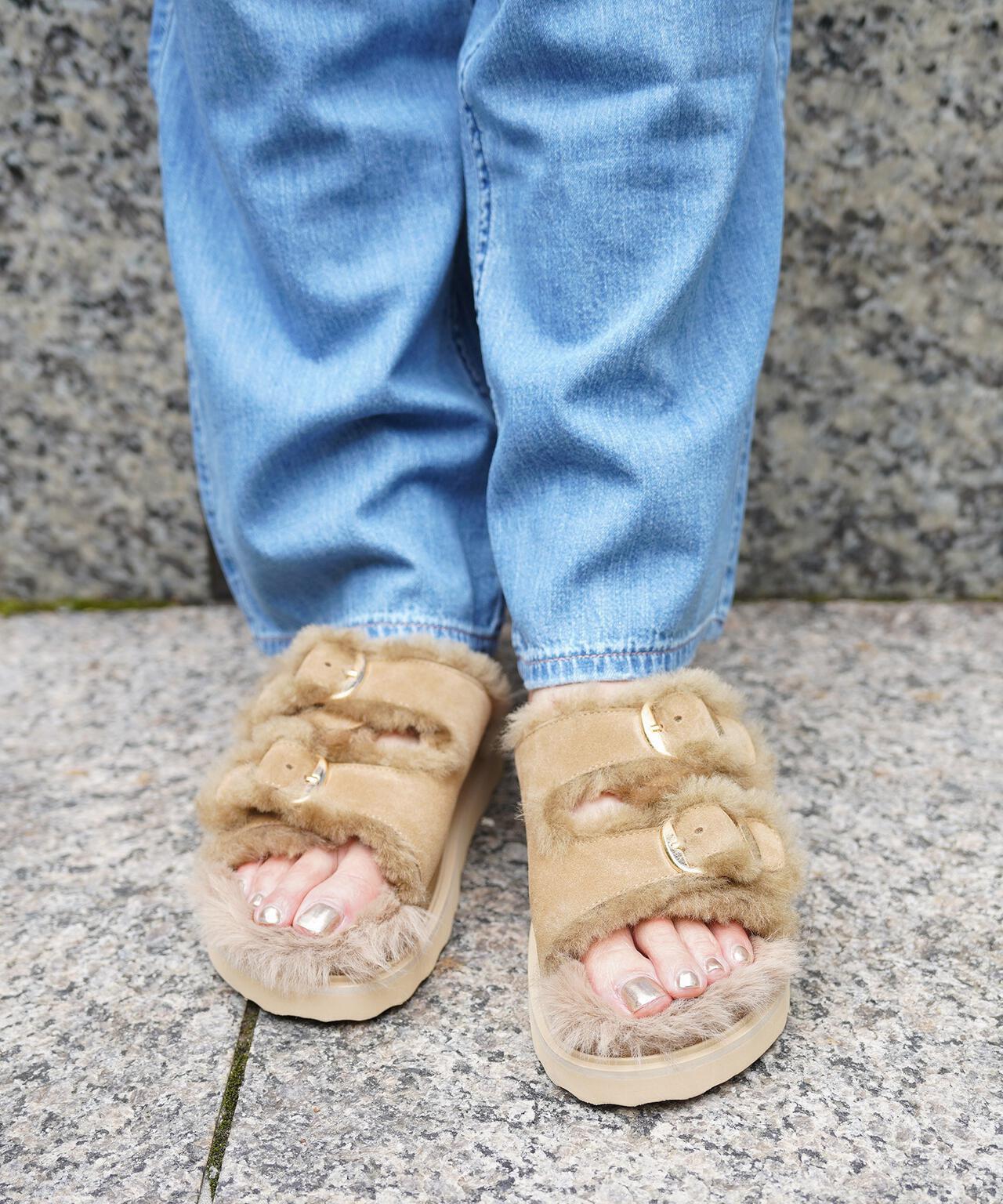 ゴールドのリングが上品な印象に。足を入れて頂くと、ファーのボリュームでとても心地よいです。