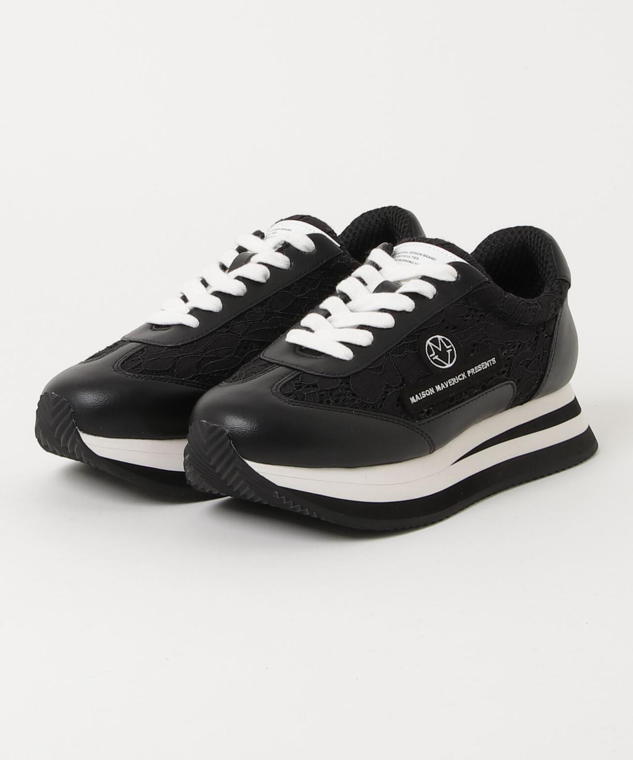 フランスの1990年代のパリコレで活躍したクラシックスニーカーからインスピレーションを得たデザインのスニーカー『アンセスターダッドスニーカー』をフェミニンなレース素材とスムースレザーでアップグレードしたモデルです。