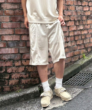 トラックパンツと並び人気の高い定番ショーツのシルエットを落とし込んだ個性的な一本。