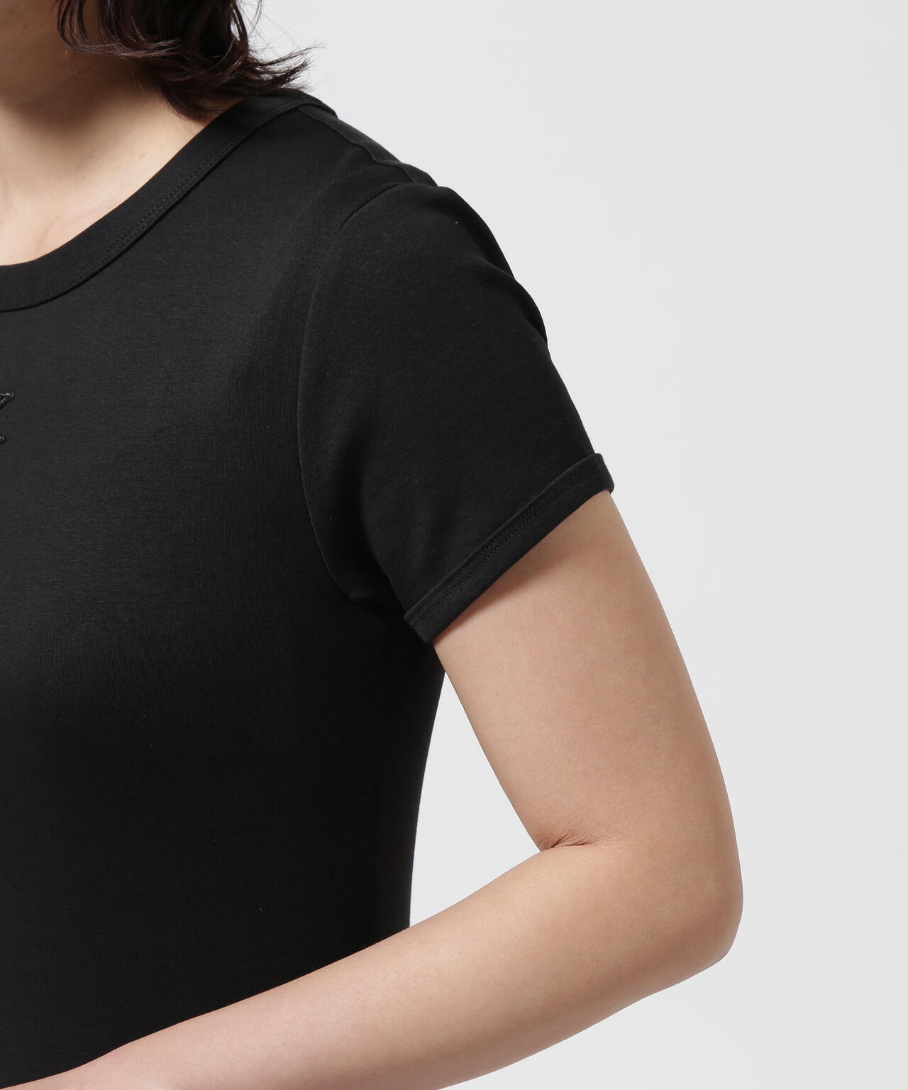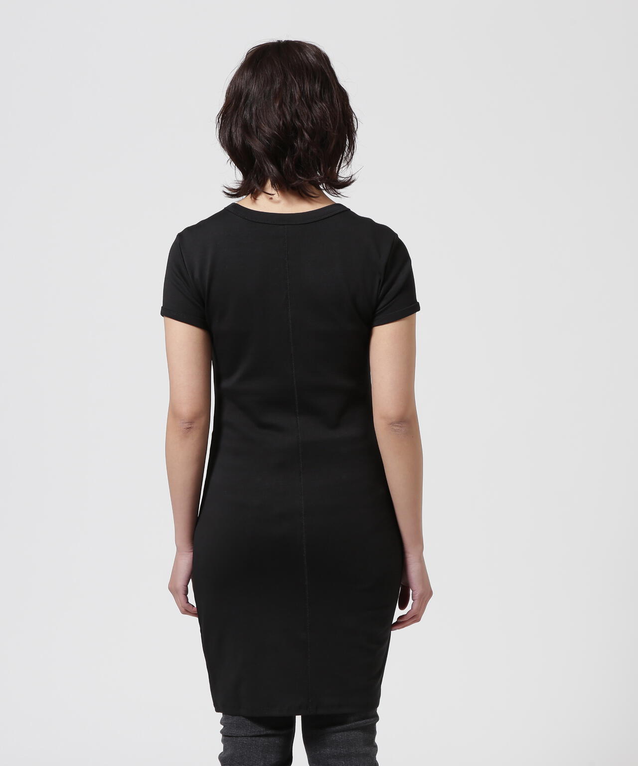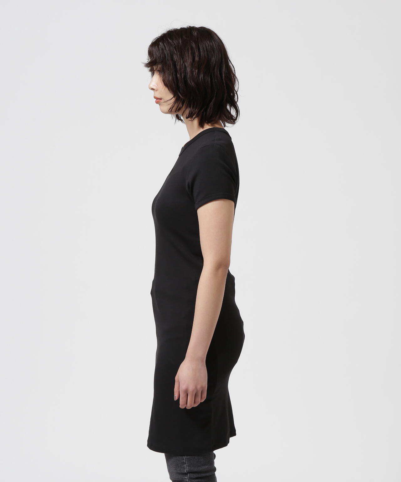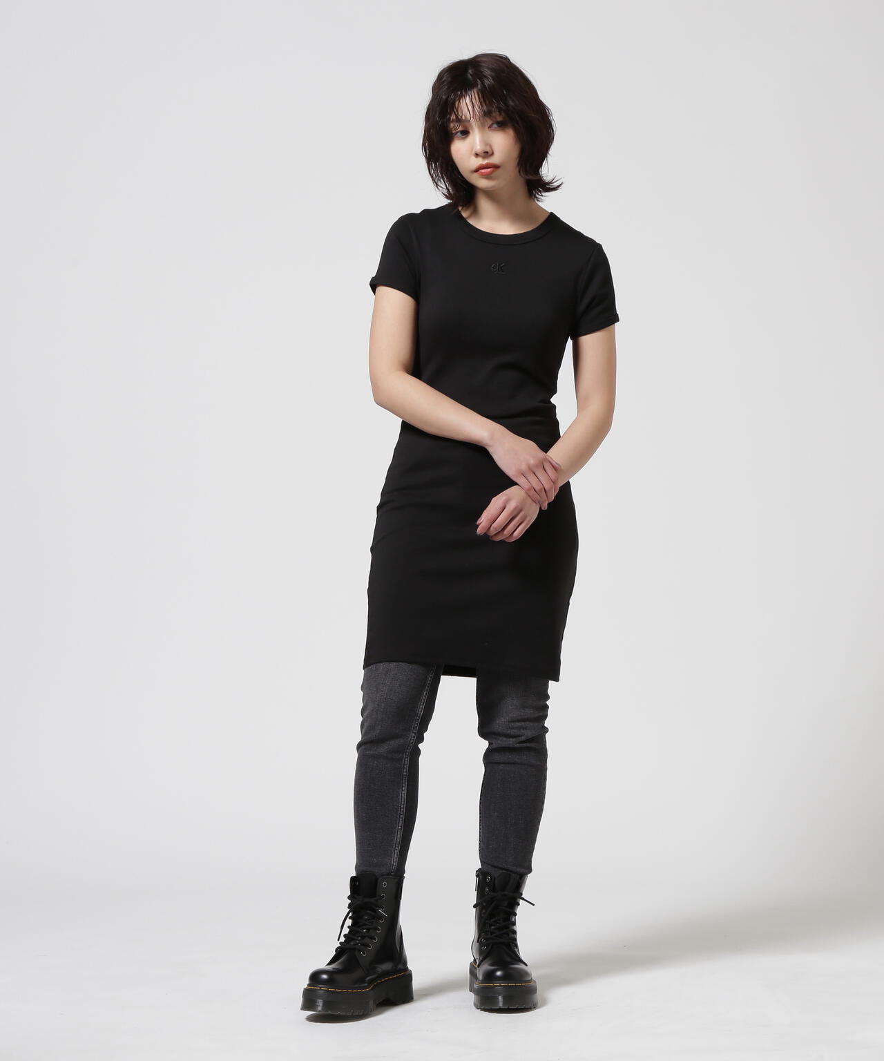 ほどよく厚みのあるカットソー生地の半袖ワンピース。女性らしいボディコンシャスなシルエットで、ヘルシーかつセンシュアルな一着です。首元と袖口はリブで補強し、背面はセンターシームでメリハリをプラス。フロントにはCK刺繍を配置。スニーカーやキャップを合わせるだけで人気のスポーツMIXスタイルが楽しめます。メーカー品番:47B266G