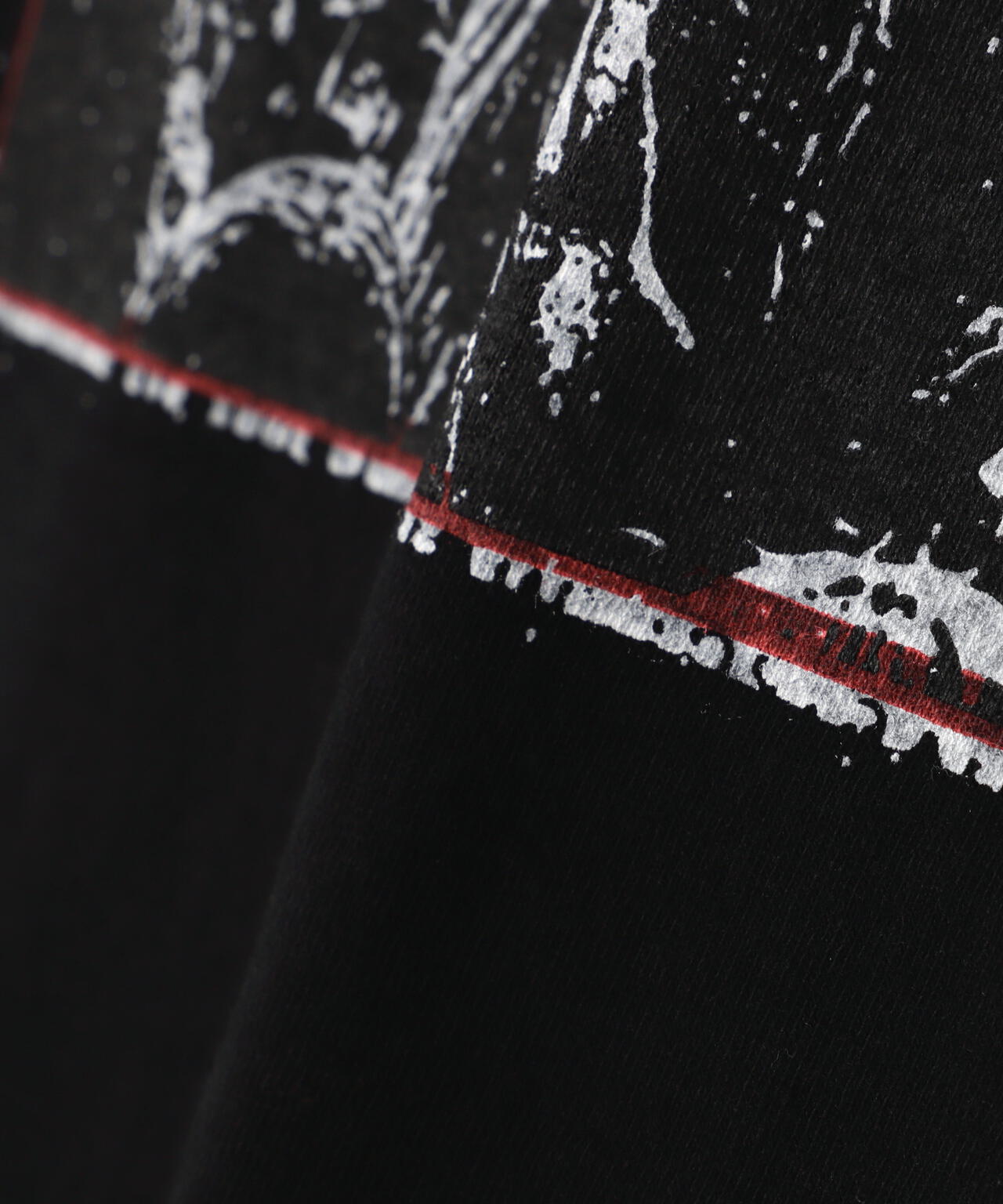 肌触りの良い20/-天竺生地(生地染め)に新作プリントを落とし込み、SP加工を施して着こむほどにヴィンテージの雰囲気が出るTシャツに作り込みました。