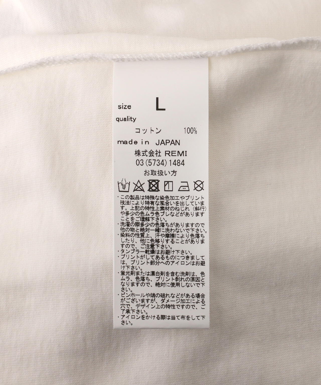 REMI RELIEFのSP加工はこの自然の原理を再現して、昔ながらの直接染料を使い酸素と結合させて、ゆっくりと長時間かけて染料を退色させています。ボディもそれなりのダメージをおいますが、薬品を入れたりバイオによる生地を無理に融かしたりするような加工とは違い、古着本来の経年によるダメージにもっとも近い雰囲気で、着続けていくほどに本当の古着と見分けがつかなくなるよう自然な加工を施しています。