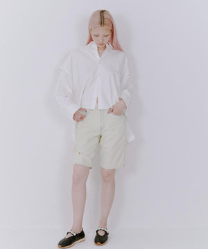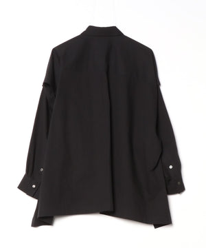フレンチスリーブシャツとしてのスタイリングも可能なレギュラーカラーのオーバーサイズシャツです。