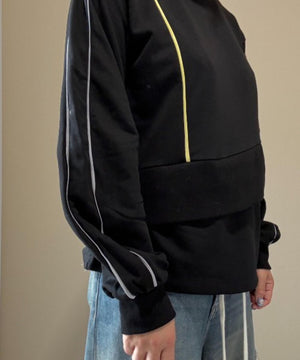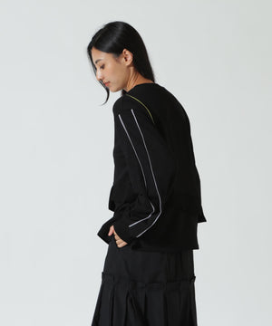 袖と身頃には、異なるカラーの配色ラインが入っていて、シンプルな中にアクセントをつけてくれる。
