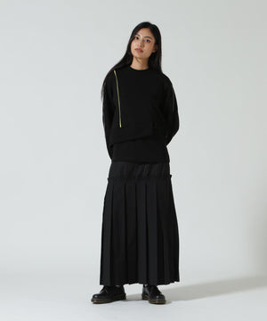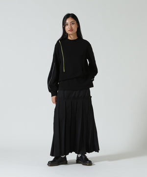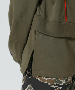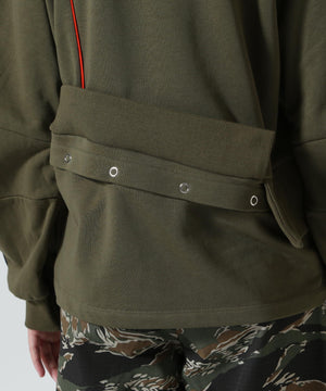 袖下ファスナーは開けるとスリットになるので、袖口スリットにしても良し、いっぱいに開けてインナーとのレイヤードスタイルも楽しめる。