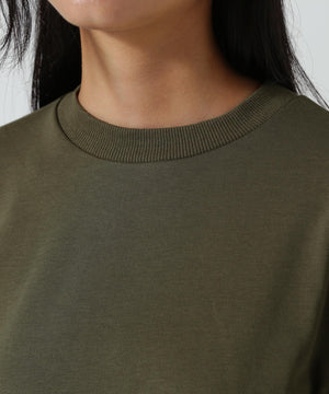 リングドットを途中まで外して、スリットのようにしても◎素材はすっきりとした肌触りのミニ裏毛を使用。