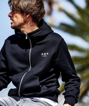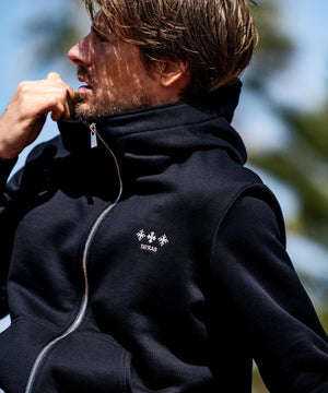 ボリュームのあるハイネックが特徴で、フードはスピンドルを省いたシンプルなつくり。