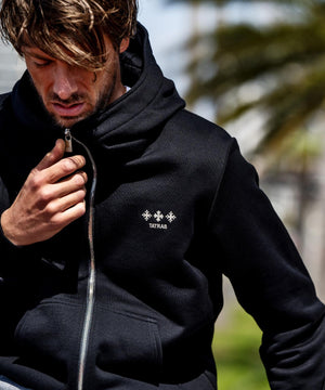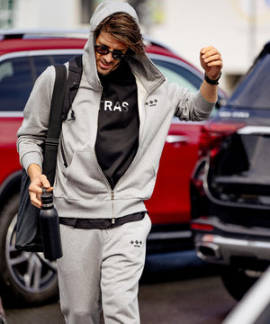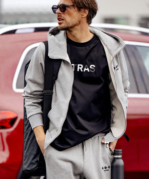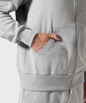 光沢とハリのある綿100%の裏毛素材を使用しています。ダブルシルケット加工で極限まで毛羽を減らしているため手触りも非常に滑らかです。