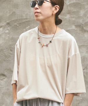 ベルベット特有の上品な光沢感を表現したカットソー素材のリラックストップス。コーデュロイのような細めの畝もポイントで、シンプルでありながらも存在感があります。程よくゆったりとしたサイズ感と、素材に落ち感がある為、骨格を華奢に見せてくれます。バックネックにはオリジナルジャガードネームを付け、YENNらしいカジュアル感をプラスしました。デニムはもちろん、あえてきれいめなボトムスに合わせ、ゆるっとラフに着用していただくのもおすすめです。(同シリーズのVELBET RELAX PT(Y253-32071)とSET UPで着用していただけます。)
