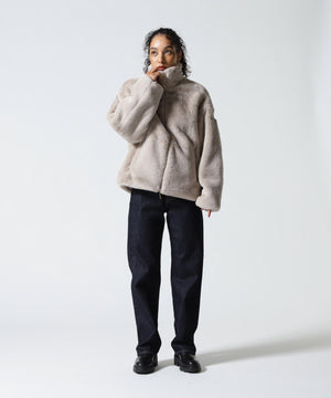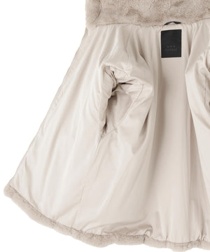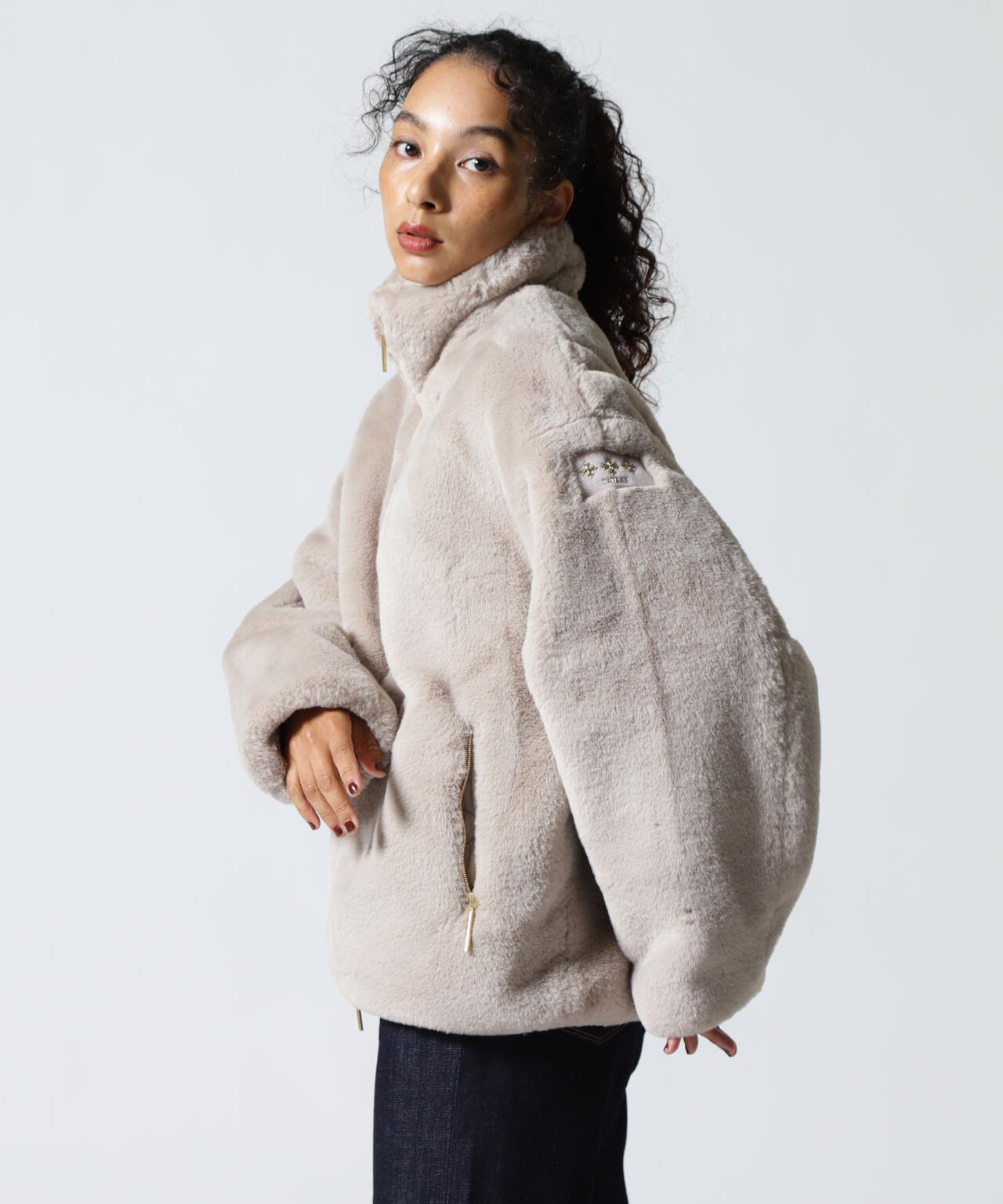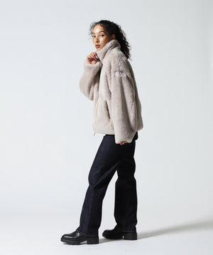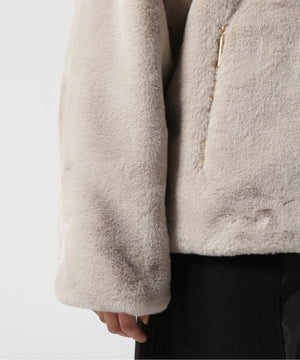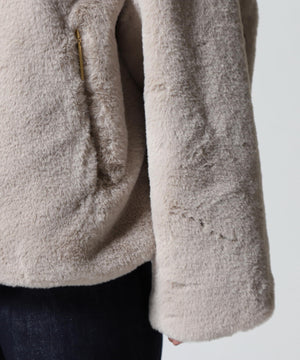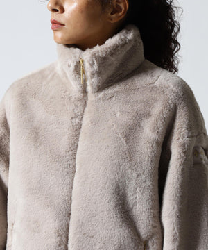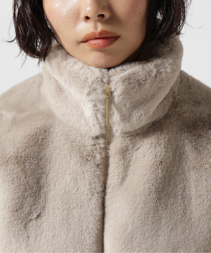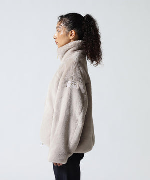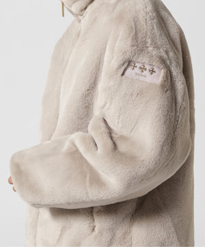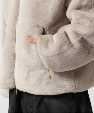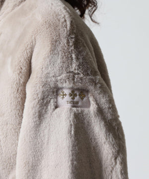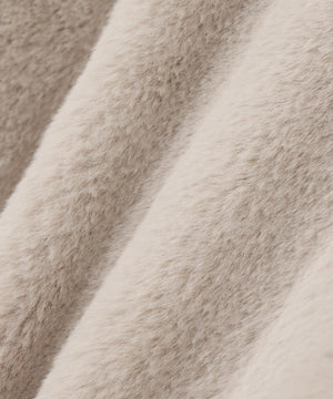 リサイクルポリエステル糸を使用したラビットファー調の素材は、発色のよさと繊細なタッチが特徴です。