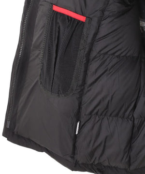 中わたには、特殊セラミックスの遠赤外線効果により優れた保温効果が持続する光電子ダウンを封入。高度な洗浄技術により、汚れを徹底的に除去したクリーンなダウンが高い保温性を確保します。表地には30デニールのGORE-TEX WINDSTOPPERの2層生地を使用。防風性とともに耐水性もあり、雪や小雨程度の濡れを抑えます。