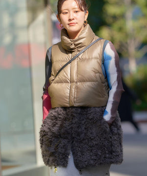 ファー部分を取り外して、ショートダウンでも着られるベスト。